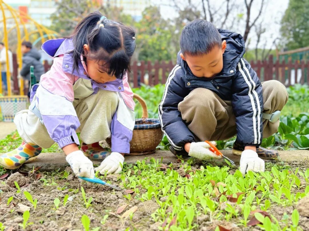 两园精心开辟菜园、果园,将方寸天地化作孩子们探索自然的“活课堂”。这门以自然为媒的课程,让孩子们在沉浸式体验中培养观察力与探索欲,悄然播撒下热爱自然的种子。