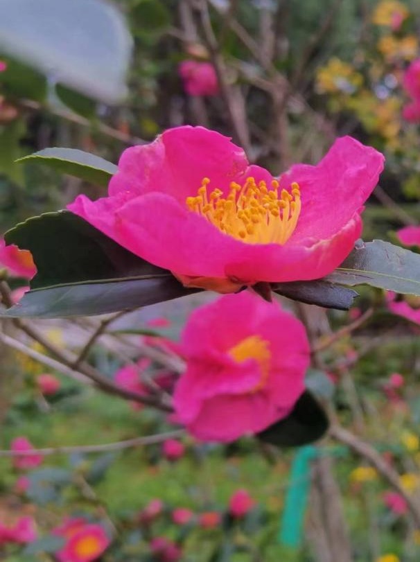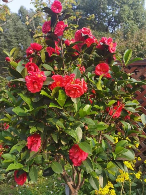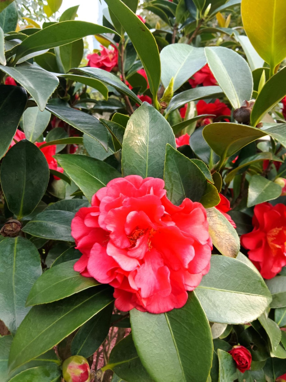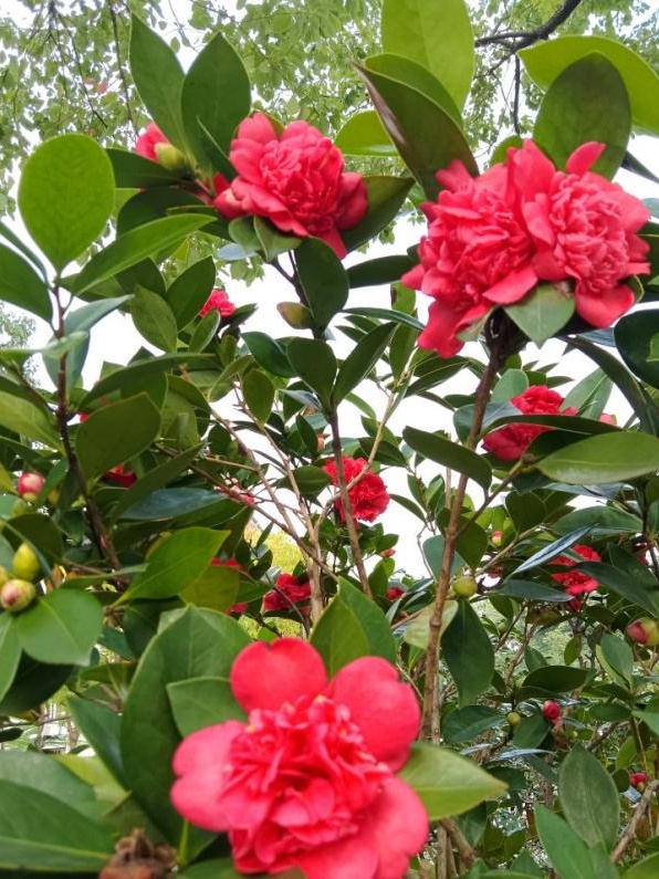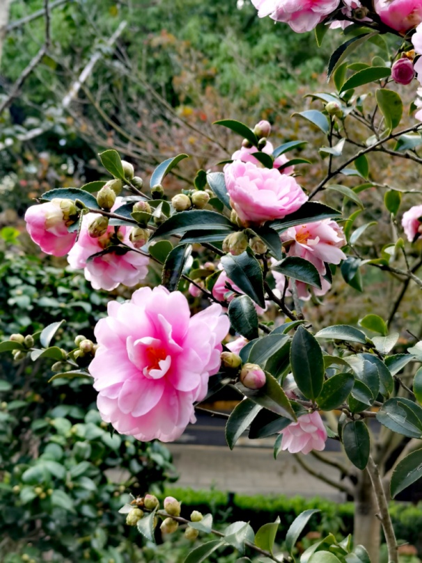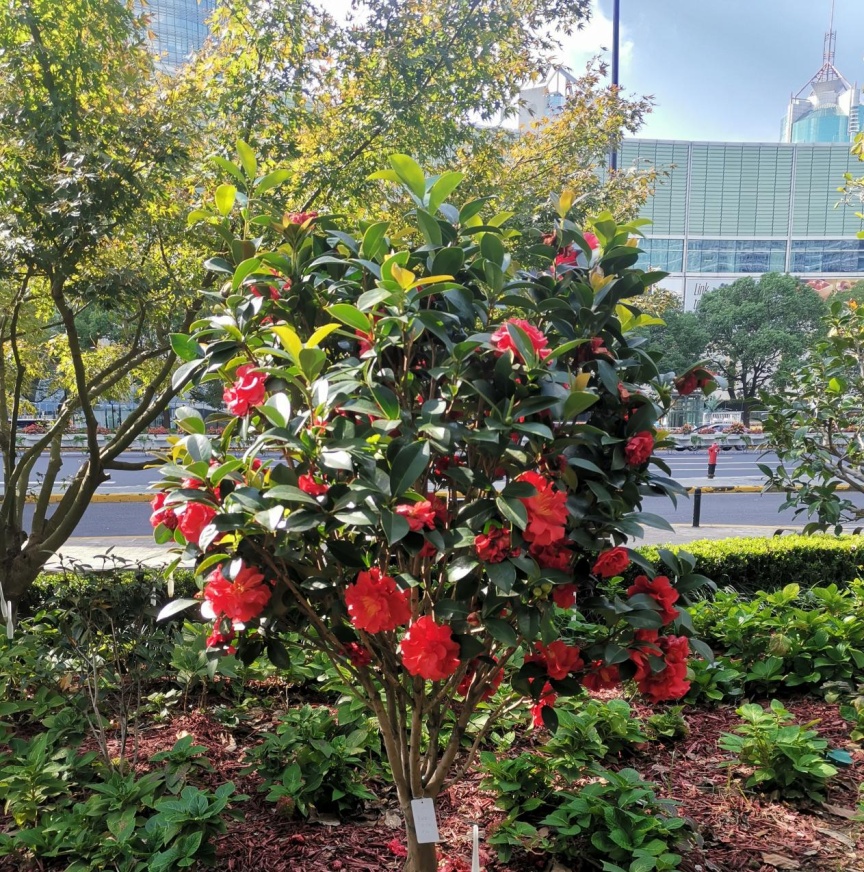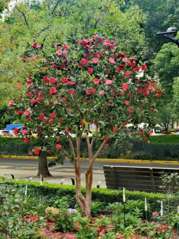 时序入冬,万物敛藏 却有这样一处园子 正酝酿着一场盛大的花事 世纪大道茶花园作为茶花植物专类园,去年改造新增三十余种茶花、茶梅。随着天气渐凉,这些“花中娇客”早已迫不及待。随着第一棵“夏日七心”的盛开,茶花正式在冬季绽放出其独特的色彩。 夏日七心 茶花,山茶科山茶属常绿灌木或小乔木,原产于中国东部,南诏时期广为栽培,唐光化二年的《南诏图》画卷中的云南山茶古树是中国绘画中最早出现的山茶形象,中国传统十大名花之一,花语为含蓄、爱慕之心、高洁孤傲、深沉谨慎。 进入茶花园,首先映入眼帘的是那一抹靓丽的红,那是最先绽放的“四季茶花”系列。如“夏日七心”“夏日叠星”“夏梦小旋”“怀金拖紫”等十一种四季茶花,此时正在盛花期,由其“四季”之名,可知其花期绵长。 该系列品种涵盖单瓣、半重瓣、托桂型、牡丹型、玫瑰重瓣型、完全重瓣型等六种茶花花型,花型花色各异,秋冬盛花,春季亦可持续开花。 在这些四季茶花中,“夏日七心”与“夏梦小旋”品种四季茶花开得尤其盛烈。 夏日七心 植株紧凑,立性,枝叶稠密,生长旺盛。夏、秋盛花,冬、春稀疏开花。 花朵浓密,深红色, 牡丹形态。直径8-9厘米,外花瓣19片,花瓣宽而倒卵,花尖宽有缺口,表面微微起皱。叶子深绿色,长椭圆形,闪亮,边缘细长锯齿状。 夏梦小旋 花型玫瑰重瓣型到完全重瓣型,花径9~12cm,花瓣粉红色,38枚以上,排列整齐,边缘略内卷,全开放时花心偶有极少量雄蕊,花期6月中旬至12月底。 此花含苞之初内敛含蓄,盛开时,一排排整齐的花瓣缓缓绽开,优雅而艳丽,以最灿烂的姿态迎接将至的凛冬。 它们自深秋吐蕊,经霜愈艳,历冬不凋,直至春深,用不息的花事诠释着生命的韧性。 夏梦华林 (牡丹型) 夏日叠星 (半重瓣型至牡丹型) 夏日七心 (牡丹型) 怀金拖紫 (托桂型) 大红灯笼 (托桂型) 夏日粉黛 (单瓣型) 桂月昌华 (牡丹重瓣型) 夏日红绒 (单瓣型) 四季茶 紧随“四季茶花”系列绽放的 是茶梅中最早开花的品种 “朝仓” 紧随“四季茶花”系列绽放的是茶梅中最早开花的品种——“朝仓”。 朝仓 花径9厘米左右,半重瓣至牡丹型,开花繁多。外轮花瓣泛红晕,荷花状盛开呈白色,白里透红,像是娇羞少女的脸颊。 细嗅花瓣,淡淡的清香萦绕鼻尖,配合美丽迷人的花型,令人心旷神怡。 茶梅以香不夺人、色不媚俗的集体气质,为冬园定下清雅而坚韧的基调。它们不与凡卉争春,不畏霜雪严寒,灿灿然而绽放,成为少花季节的耀眼明星。 陈淏在《花镜》中指出“茶梅,非梅花也。因其开于冬月,正众芳凋谢之候,若无此花点缀一二,则子月几虚度矣。 ” 即将绽放的茶梅品种 (12月-次年3月) 白芙蓉 相扶恋 昭和之荣 丹玉 东红牡丹 小玫瑰 笑颜 立寒 晚霞 乙女 观茶梅,宜在清晨,当宿露未晞,看那嫣红、粉白的花朵,含着晶莹的冷露,便觉古人“清极不知寒”的句子,有了最贴切的注脚。 若说茶梅是冬的序曲 那园中另十一种茶花 便是一阕不曾间断的绵长乐章 她们承接着茶梅的初韵 自冬至春,花开不绝 温柔而慷慨 即将绽放的茶花品种 (12月-次年3月) 美人茶 迷茫的春天 松花片 明媚 宫粉 五色赤丹 十八学士 六角大红 美国花仙子 香妃 今年因气候原因,茶花、茶梅的花期稍稍推后。 如今,各种茶花、茶梅枝头已缀满坚实的花苞,其形貌虽尚未分明,但那份紧绷的、充满生命力的期待感,已弥漫在清冷的空气里。 可以想见,不出一两旬,这片区域将由点及面,化作一片清雅与浓艳交织、星罗棋布的茶花胜景,以含蓄的笔触,绘出一幅专属于冬季的斑斓。 茶花盛开如此旺盛,离不开日复一日的养护,给大家分享几个茶花养护小技巧: 土壤:疏松透气,呈弱酸性的土壤最适合茶花生长,最好带一定的肥力,如:山泥、园土等,不管是盆植或地植,应尽量以弱酸性土壤为介质。 浇水:茶花的水份管理要求较高,盆土潮湿往往容易造成烂根。浇水应以“见干见湿”为原则,浇水一定要浇湿浇透。春秋季每周浇水2-3次,夏季增加到每周3-4次,冬季减少到每周1次。浇水根据季节和天气情况灵活调整。 施肥:合理的施肥可以促进茶花的生长和开花。在生长期(春季和夏季),每月施一次平衡的有机液体肥料。秋季减少施肥频率,冬季不需要施肥。肥料种类可以选择富含氮、磷、钾的肥料,或者使用专门的茶花专用肥料。 随着天气转冷 各种茶花、茶梅品种将陆续开放 循着各自的花期徐徐盛开 一树树红、白、粉的花朵 从墨绿的叶片中喷薄而出 满枝满丫 协同演奏着专属于此的绵长乐曲 绽放独属严冬的美