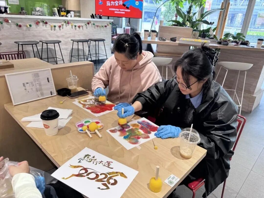 随后进行的“马力全开”拓印DIY环节,则为活动增添了新年仪式感。拓印作为承载传统文化的手工艺术,不仅能让人感受动手的快乐,更能传递节日的美好寓意。党员们自由挑选马年元素拓印素材、颜料等工具,发挥灵感创作属于自己的作品。有的党员大胆创新,搭配出个性十足的奔腾骏马。有的则挑选美好寓意的拓印素材,希望新的一年策马启新程。当一件件作品完成后,大家捧着作品拍照分享,还在互动中拉近了彼此的距离。