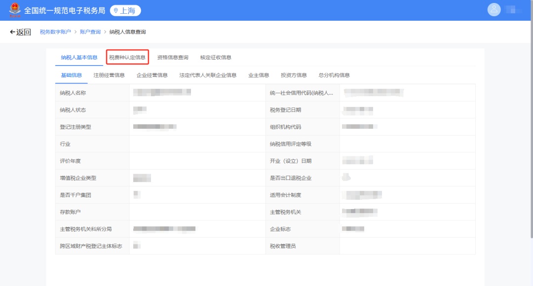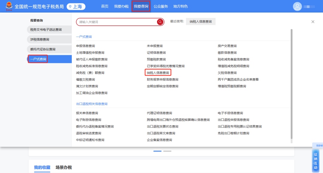 登录新电子税务局,依次点击【我要查询】-【一户式查询】-【纳税人信息查询】,进入功能页面,系统会显示企业的基础信息。