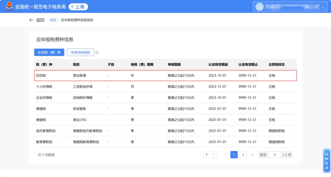 除此之外,也可以通过进入【我要办税】-【综合信息报告】-【应申报税费种信息报告】,系统会显示当前企业有效税费种认定信息。