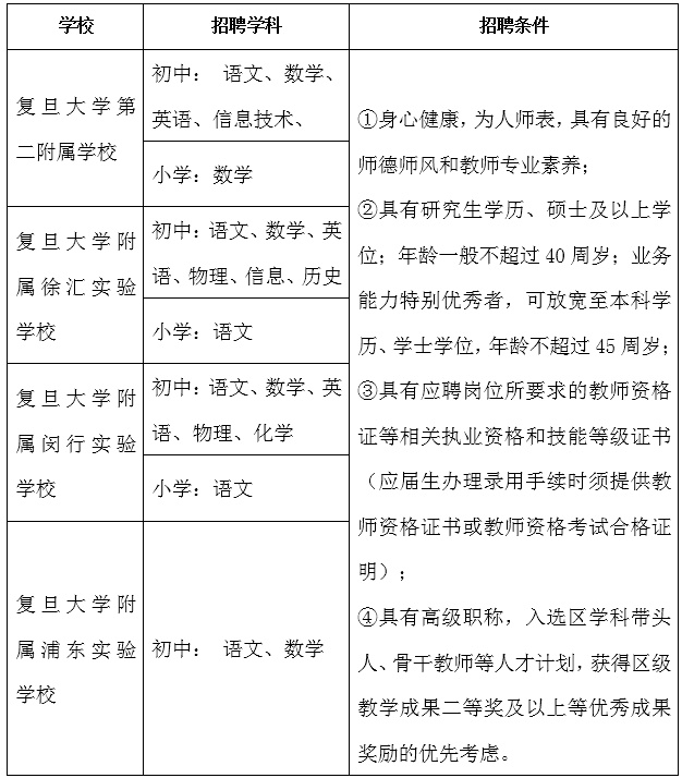 5.确定人选。复旦大学基础教育招聘工作小组对各学校推荐的候选人进行审议,确定拟聘用人选。
