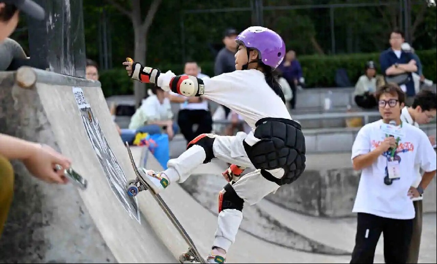 在弧面间腾空飞跃