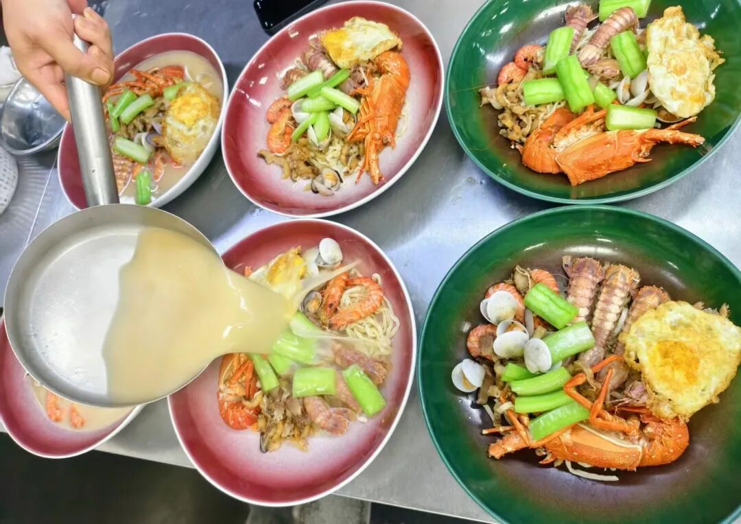 作为店内的“常青款”,基础版三鲜汤面是人气菜品,奶白的汤头配上基围虾、花蛤等鲜货,鲜香开胃。午休时段专程从公司前来打卡的李先生直言:“店离公司很近,28元一碗的价格,性价比挺高的。”