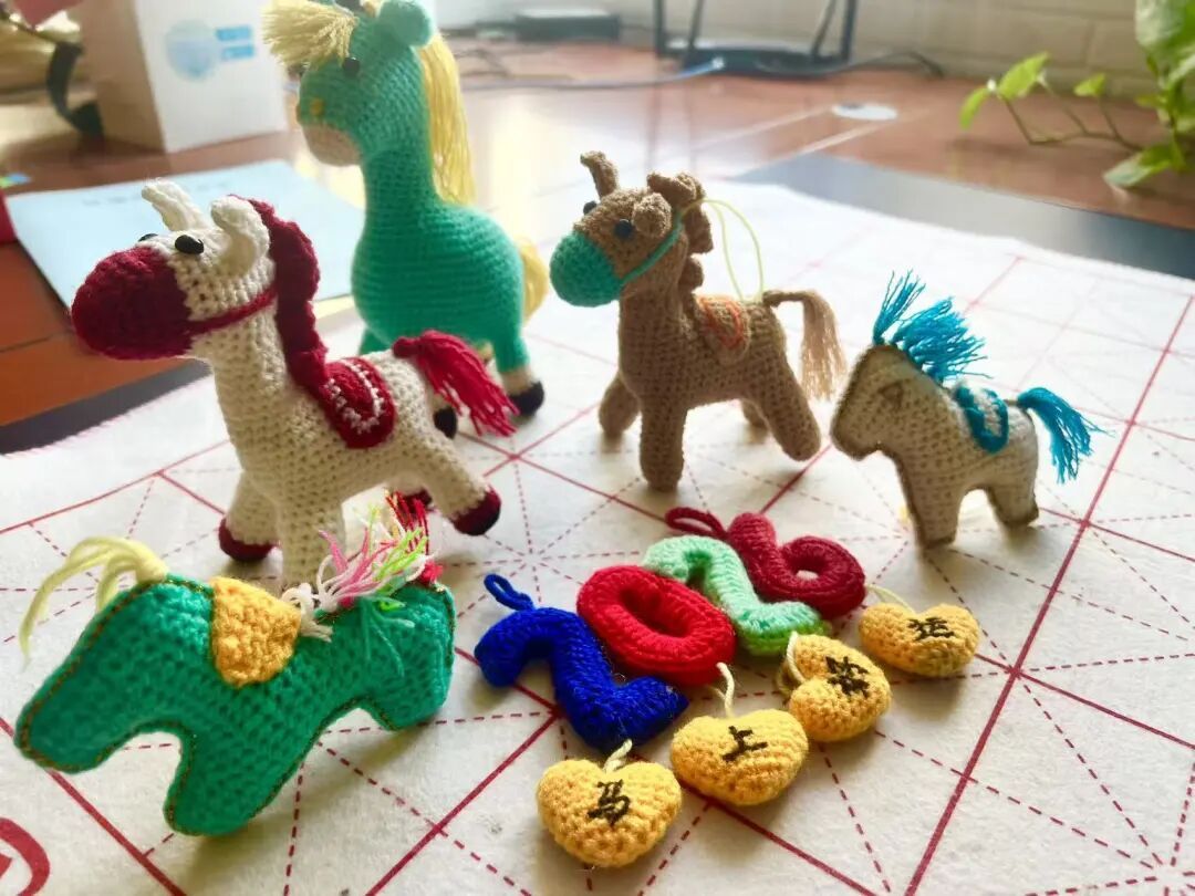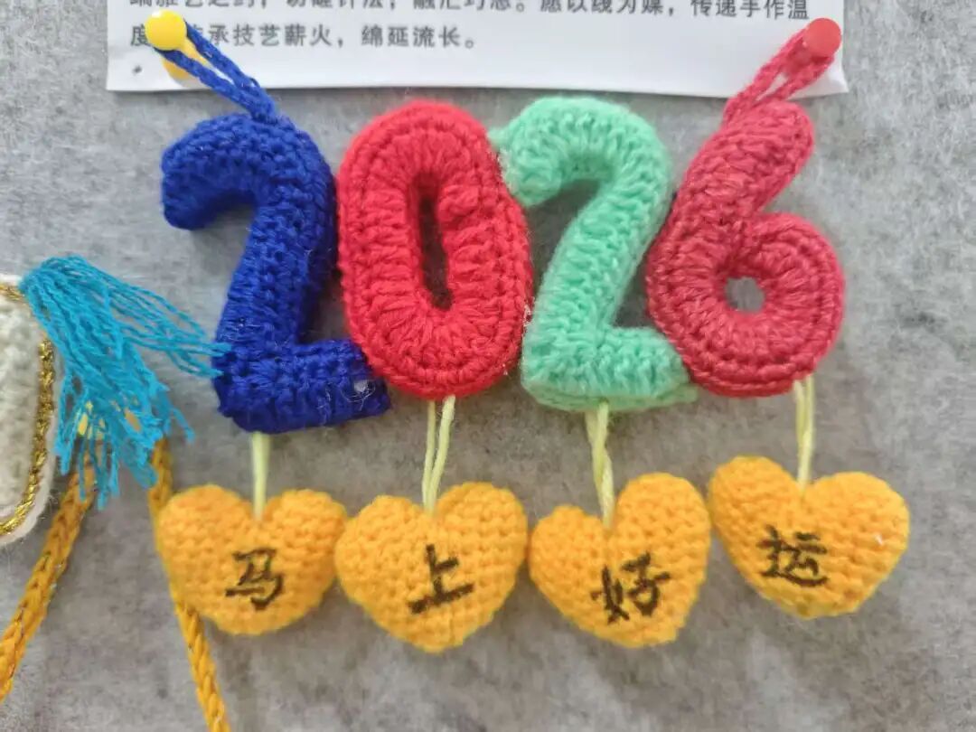 从构思到成型,这组承载着新春祝福的钩编作品,凝聚了她近半个月的心血。