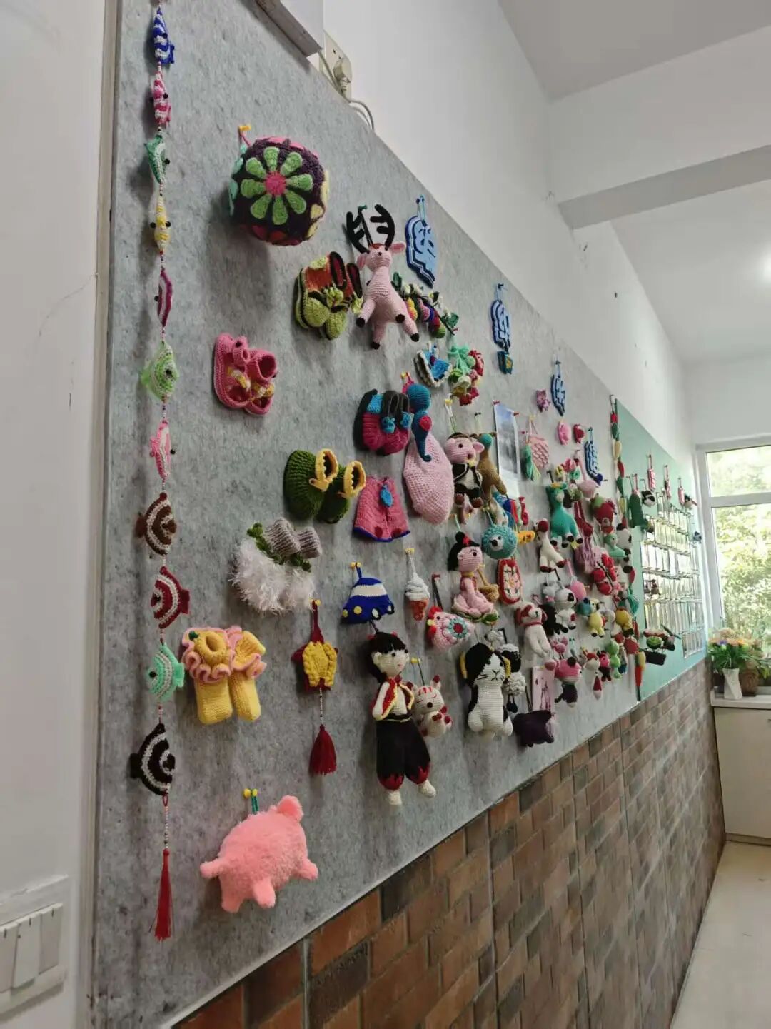 居委会随即腾出一面空墙,钉上挂钩,“编织物语”展示墙应运而生。此后,孙跃妹陆续送来自己的作品:展翅欲飞的蝴蝶、含苞待放的荷花、憨态可掬的小动物……原本单调的墙面逐渐“活”了起来。几个月后,这里成了社区里的热门打卡点。居民上下楼时总会在此驻足片刻,一面展示墙,悄然拉近了邻里之间的距离。