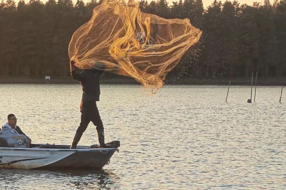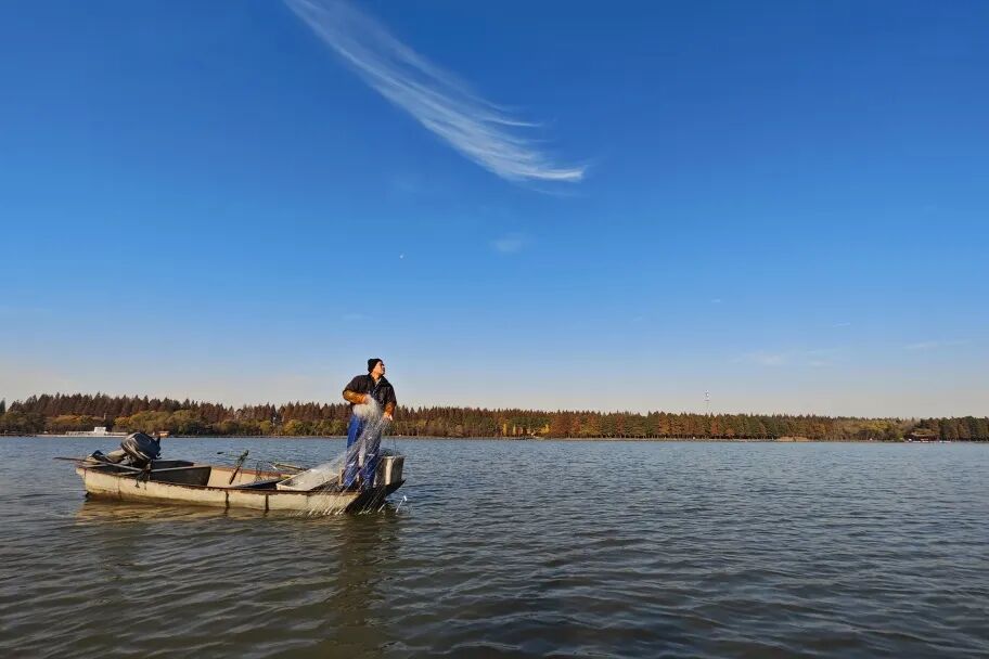 撒网捕鱼表演将在明珠湖游艺船区域举行。届时,表演者挥洒不同颜色的渔网进行捕鱼,船上两人,一人划船,一人撒网,网开鱼进,游客可近距离观看捕鱼场景。