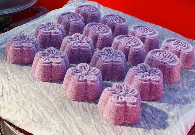 取一把崇明新米磨成的细粉,填入雕花木模轻轻压实。翻转、轻敲,福字纹样便落入掌心,祝愿每位吃到印糕的朋友福气满满。上笼蒸片刻,米香随热气升腾,一块带着掌心温度的软糯印糕就此诞生。