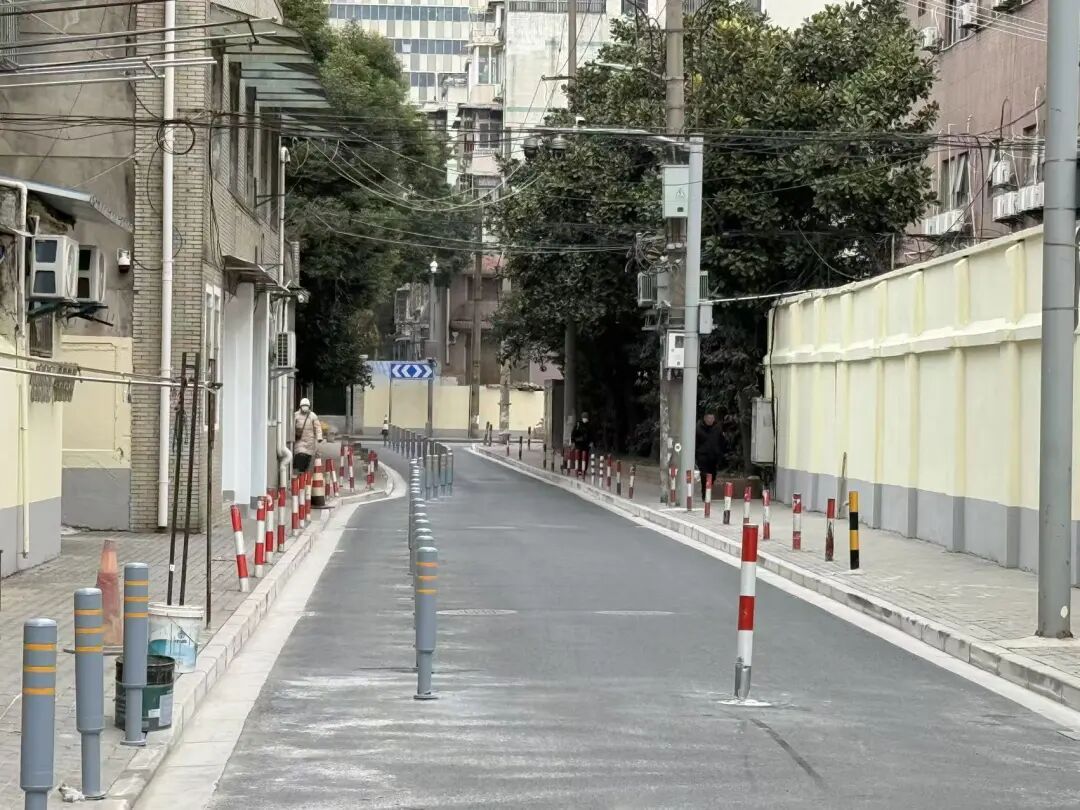 “变化太大了!以前路面坑坑洼洼,下雨天一踩一脚水,我们老年人特别怕摔跤。现在路平平整整,晚上路灯亮堂堂的,心里踏实多了。”家住杭州路66弄的李阿姨感慨道。改造不仅恢复了道路基本功能,更通过细节优化提升了生活品质。宁国路229弄通过禁车柱解决了私家车占用消防通道的问题;眉州路432弄的侧面石修整,也让街角面貌焕然一新。