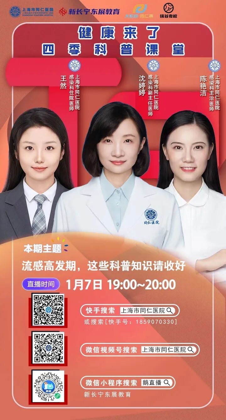 今天(1月7日)19:00—20:00,“上海长宁”APP将与上海市同仁医院“大虹桥·同仁荟健康直播”共同直播:流感高发期,这些科普知识请收好。