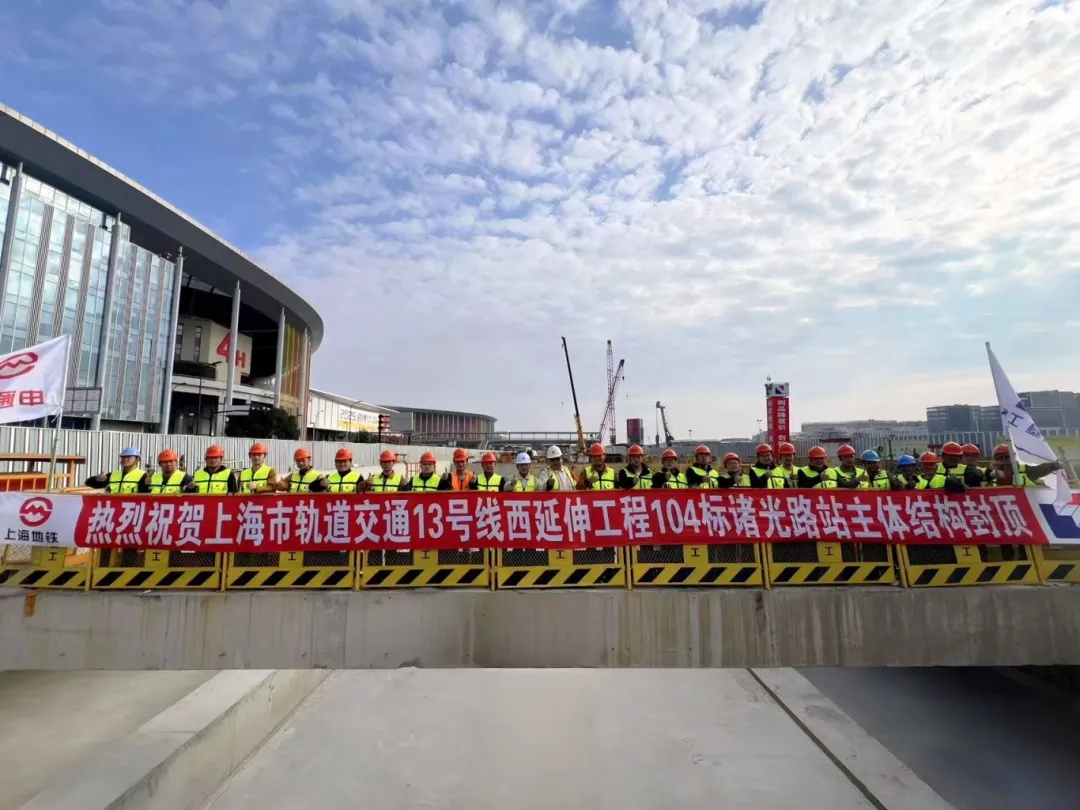 诸光路站位于诸光路与崧泽大道交叉口南侧,沿诸光路呈南北向布局。车站西侧为联美A、E地块及百老汇1、2号地块,东侧衔接诸光路地道口与国家会展中心,北侧通过诸光路人行地道实现与 17 号线的便捷换乘,南侧与地铁2号线站厅换乘。诸光路站为地下三~五层岛式双柱三跨(局部单柱双跨、公共区无柱拱顶)混凝土箱形结构,采用明挖法顺作法施工。 自项目开工以来,一分公司严格遵循 “六个高质量” 和 “十个目标”发展要求,将标准化作业与精细化管理贯穿施工全过程。通过优化施工方案、强化安全管控、严控工程质量,高效破解施工中的各类难题,针对拱形顶板,组织施工单位进行试验段试拼优化。同时要求严控材料源头质量,实行专仓专用与全流程监督。采用“一次性模板支架 + 钢筋绑扎 + 跳仓浇筑“工艺,细化浇筑振捣工序,搭配自动水循环与无线测温系统,管控大体积混凝土水化热,杜绝了渗漏隐患。 项目建成后,将进一步优化虹桥地区快速交通网络,强化客流、商流、文化交流等多重发展机遇,提升周边轨道交通服务能级,保障国家会展中的集散能力,对完善区域轨道交通线网功能起到重要作用。
