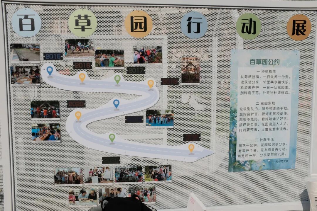 9月,目前就读法学专业的桂凯琳发起“百草园公约共创工作坊”。居民分成园丁组、管家组和活动组,分别从种植规则、空间维护与社群活动等方面展开讨论,共同拟定了一份旨在维护空间品质、促进邻里和谐的社群公约。这份公约后被制成展板立于园中,成为居民共同的约定。