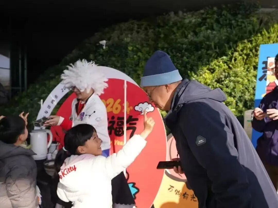 老街入口处,市民陈先生一家正在抽取“花签”,准备开启寻找“五禧之证”的闯关旅程。“通过猜诗谜、体验撕纸非遗来打卡集章,孩子玩得投入,我们也仿佛参与了一场古风游园会,很有意思。”陈先生说。活动现场,舞龙舞狮巡游队伍热闹非凡,“文”区诗词接龙雅趣盎然,“武”区投壶套圈笑声不断。