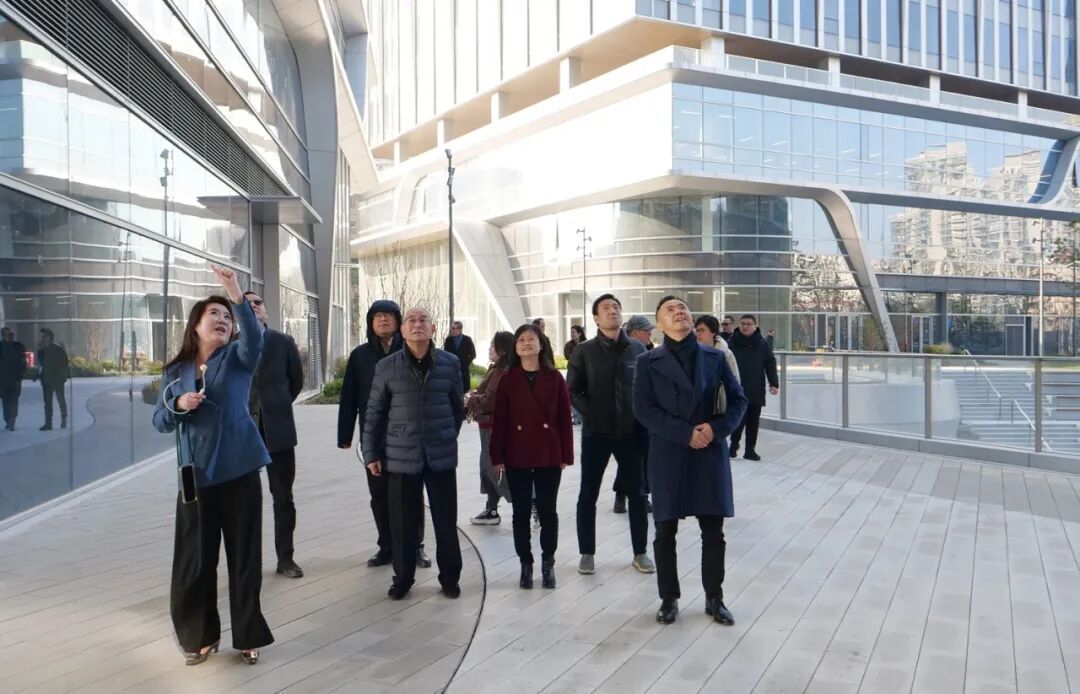 会前,代表们首先实地视察了晶耀虹桥项目的建设进展。该项目已于2025年11月正式交付,目前正处于招商阶段。作为长宁区的重点项目,晶耀虹桥将于2026年携手相关部门推出一系列大型活动,在项目方工作人员的引导下,代表们深入了解了其特色定位与规划布局。站在写字楼的落地窗前,整个天山商圈的风貌尽收眼底,有代表不禁感慨:“晶耀虹桥的建成投用,将为天山商圈2026年的经济发展注入崭新的活力!”