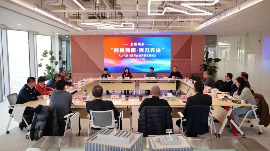 在座谈环节中,天山路街道相关负责人向代表们系统介绍了街道2025年经济运行情况,并对2026年经济工作思路与重点举措作了展望。随后,代表们结合实地察看感受与区域发展实际,纷纷踊跃发言,围绕多个关键领域展开热烈讨论。
