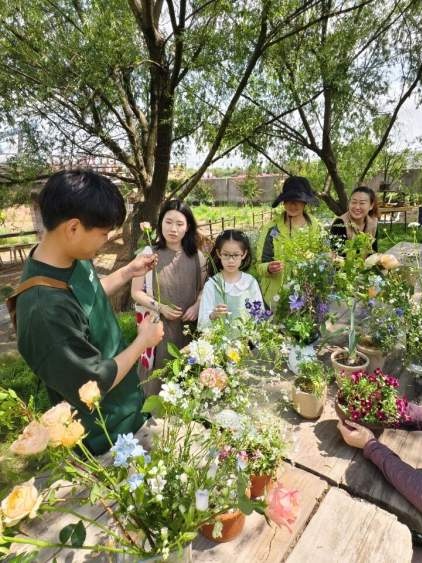 从老巴黎家居馆门口的马路往前走几分钟,一片野趣盎然的庭院映入眼帘,木质的栅栏、随风摇曳的芒草、咖啡桌椅,构成了一幅雅致的乡村画卷,这里就是枋园咖啡。咖啡馆的主理人常明豪,曾经是一名景观设计师,如今,他把自己对景观美学的理解,融入到了这家乡村咖啡馆的每一个角落。 “在市区的公司工作时经常加班,身心俱疲;另一方面,人也到了一定年纪,想要有自己的一份事业,为自己、为家庭的长远考虑。”常先生说,2023年,经朋友介绍,他来到金星村,被这里的宁静打动,于是租下10多亩地,开出了一家属于自己的咖啡馆,把自己喜欢的景观设计理念与咖啡文化结合起来,“‘枋’是木材的意思,代表着自然、质朴,我希望这家咖啡馆能融入乡村的自然环境中,成为人们感受慢生活的好去处。” 创业之初,常明豪是一个咖啡和面包小白。“一开始做出来的咖啡拉花是‘抽象派’,咖啡店唯一的差评就来自一位客人,觉得我拉花拉得不好。后来我就一次又一次地给他看学习拉花的成果,最终打动了他,给了我好评。” 常明豪还向面包师朋友学习制作面包,尤其是恰巴塔和肉桂卷。 不过,在枋园,咖啡和面包只是引子,真正的主角是常明豪和夫人用心打造的“生活场景”。春夏之际,推开木门,满园的鲜花绿植映入眼帘,小羊在悠闲地吃草,到了秋季,各种观赏草摇曳生姿。乡村风民房内,推开巨大的玻璃窗,摆上一束鲜花,坐在白色铁艺椅子上,喝一杯茶,身心一下子放松下来。这种惬意、松弛,与自然交融的氛围,吸引了不少商业拍摄,成为咖啡馆之外的一笔营收。
