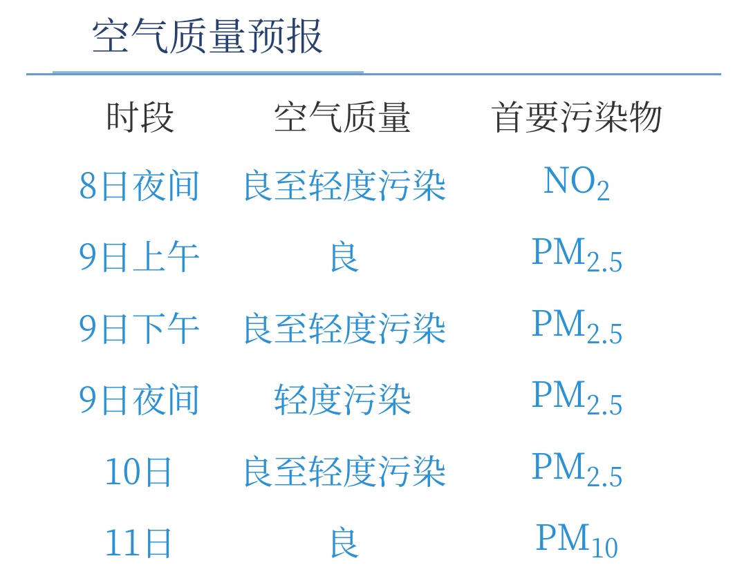 明天上午良,下午良至轻度污染,