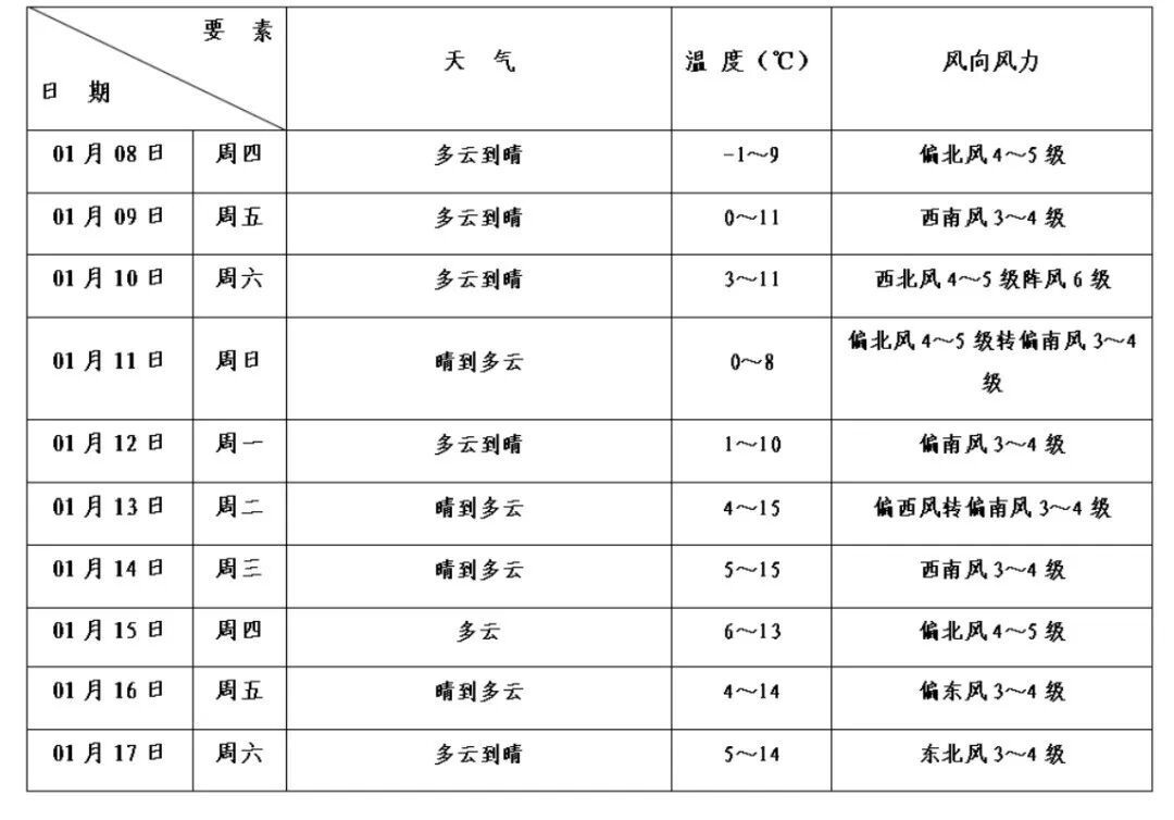 本区未来十天天气预报
