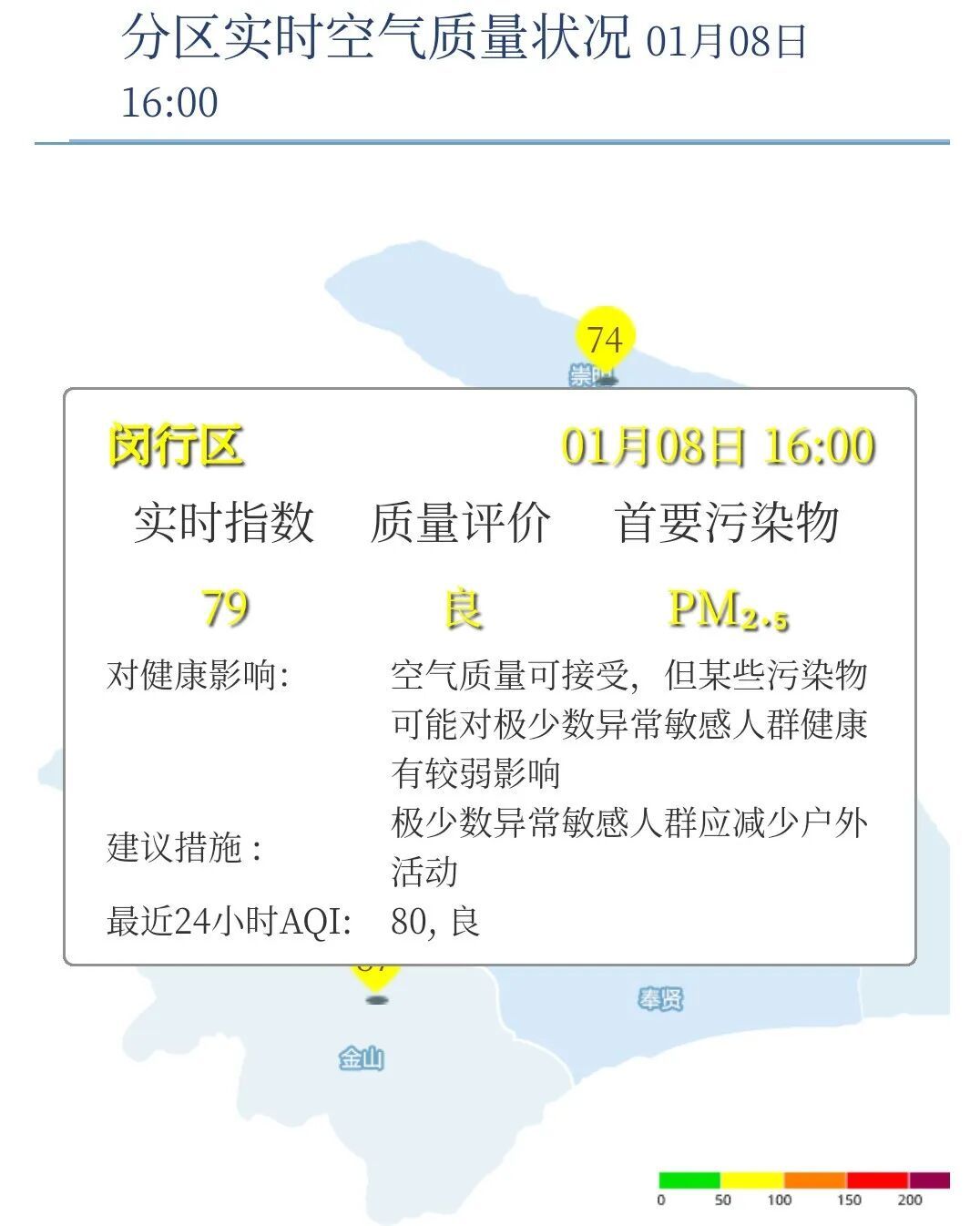 闵行区AQI为79,良,