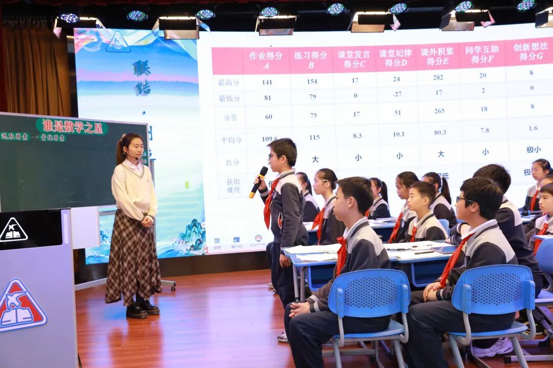 市北初级中学北校一年一度的数学节即将拉开帷幕,谁会是这一次的“数学之星”呢?七年级数学教师姚美辰带领学生开展结合“数学之星”评选的具体数据与评选目标、通过小组合作探究构建评分模型的项目化学习。