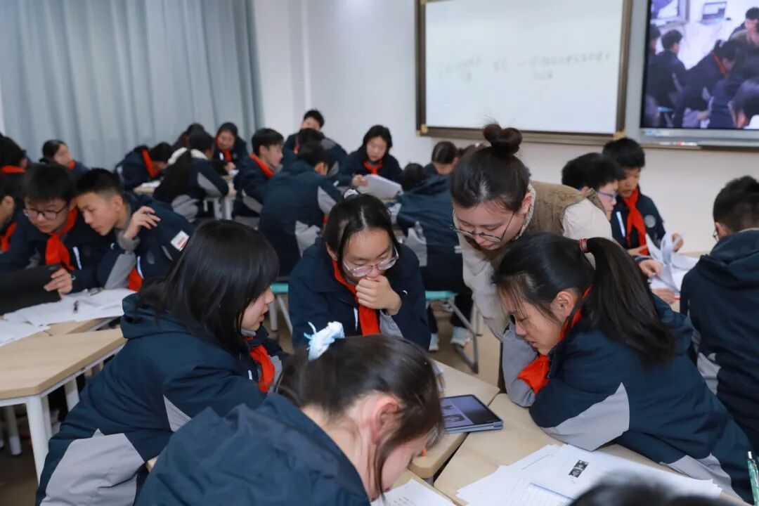活动当天,学生在数学课上学生通过数据分析探究“谁是数学之星”;历史课上,学生探究“历史的断章与回响——陶石中的秦汉”,在人物研究与时代背景的交织中触摸历史温度;在英语课上,学生走进社区开展探访,在真实场域中完成采访写作,实现语言与社会的联结。