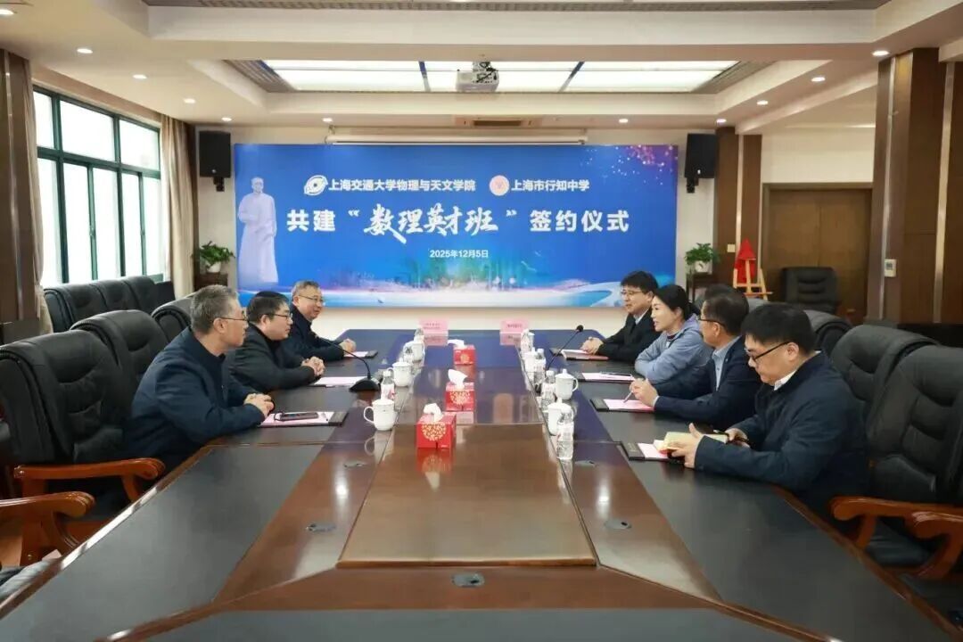 为深入探索基础教育与高等教育在拔尖创新人才贯通培养方面的有效路径,2025年12月,行知中学与上海交通大学物理与天文学院合作共建“数理英才班”签约仪式在行知中学隆重举行。