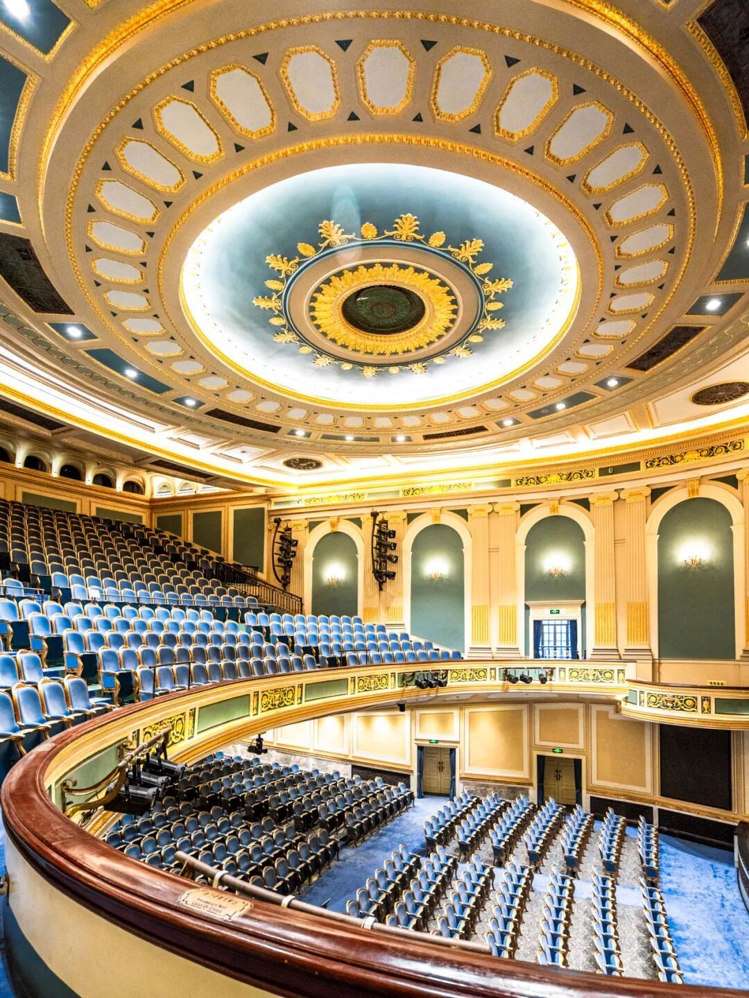 作为中国第一座音乐厅,建成近百年的它被誉为“上海的巴黎歌剧院”。而最让人屏息的,是头顶那片贴满800多处金箔的海上蓝雕花穹顶,美到让人忘记呼吸!