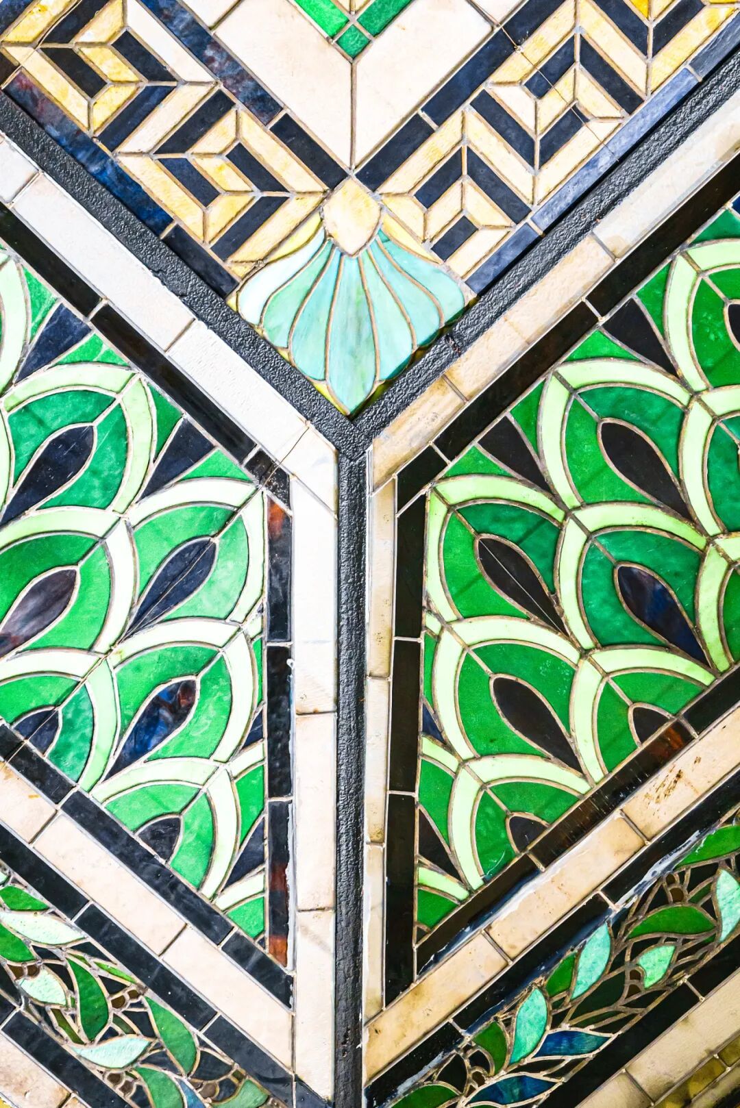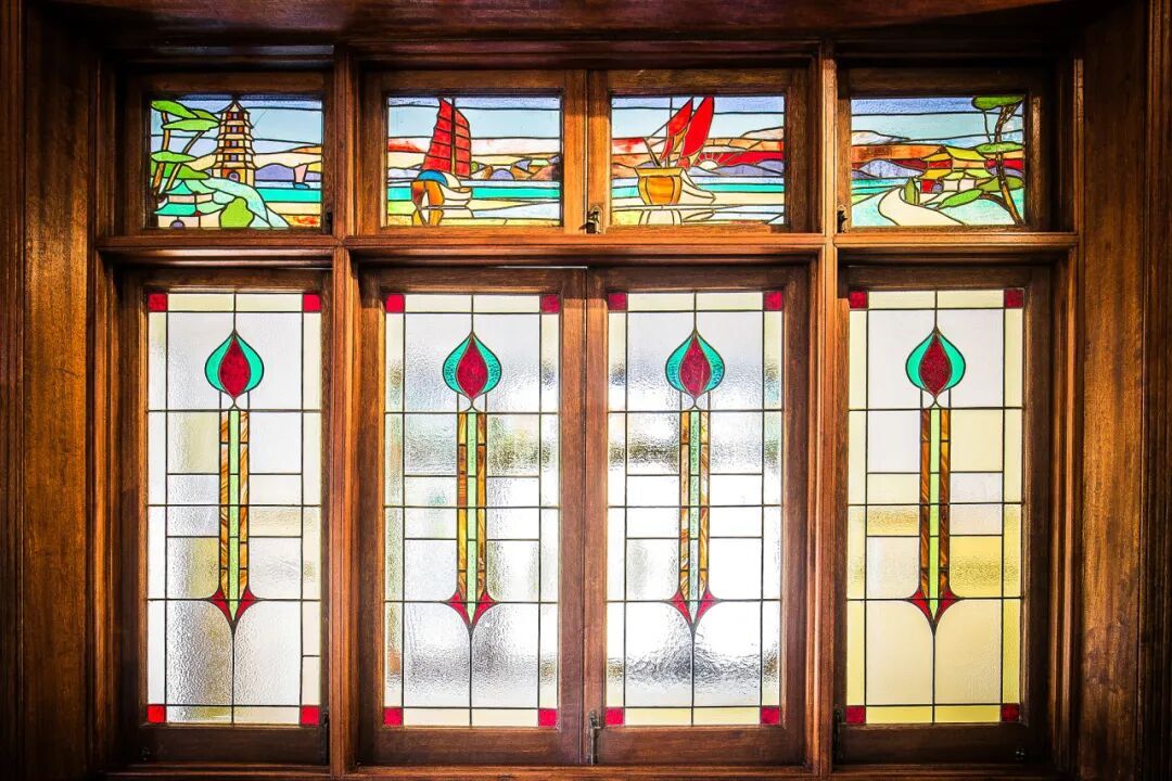 光这面天窗就藏着太多讲究:修复工作由一名意大利工匠完成,天窗中央椭圆形的部分和21块面扳被小心拆除下来,步步细致;葡萄藤图案缺了角,团队四处寻觅,终于找到1940年代德国产的彩色玻璃,才让这份复古美感完整重现。