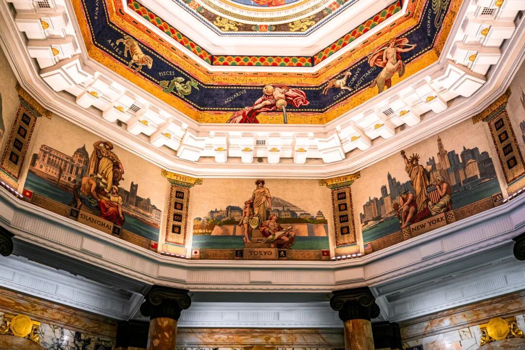 2025年最火的天花板非它莫属!作为外滩万国建筑博览群的C位之一,外滩12号重新开放,尘封60年的八角厅穹顶壁画重见天日,站在厅中仰望,仿佛坠入欧式宫廷的梦幻漩涡。