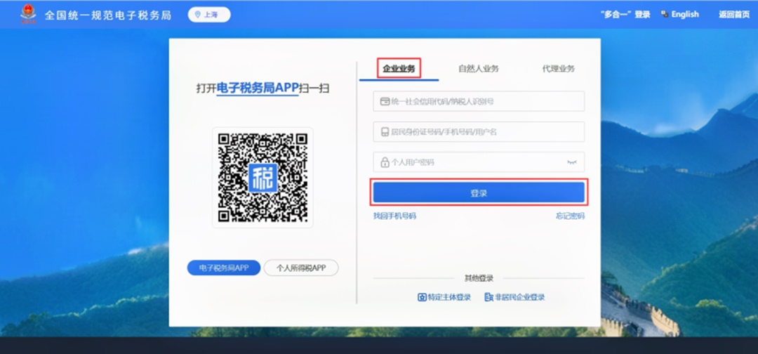 登录电子税务局,通过【企业业务】方式登录;
