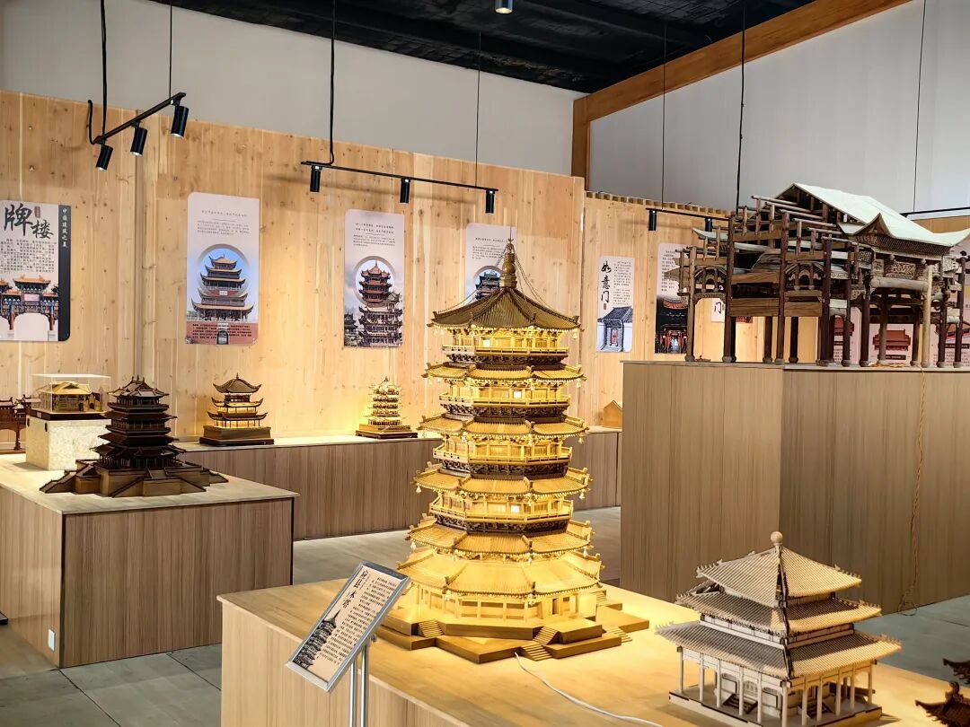 十八斗木结构研学基地内中国古建筑模型展厅一隅