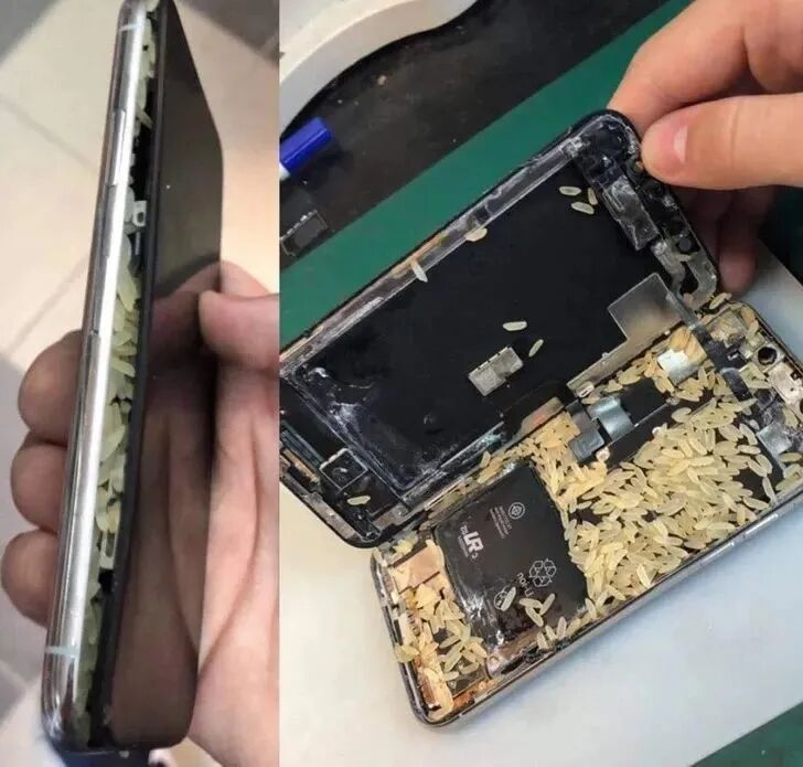 早在2007年,就有人分享了“大米救机”法[2]。当时,一位《华盛顿邮报》记者不小心将他的黑莓手机掉进了厕所,捡起手机后把它放进了一碗大米里(生的),最终“救活”了这部黑莓。