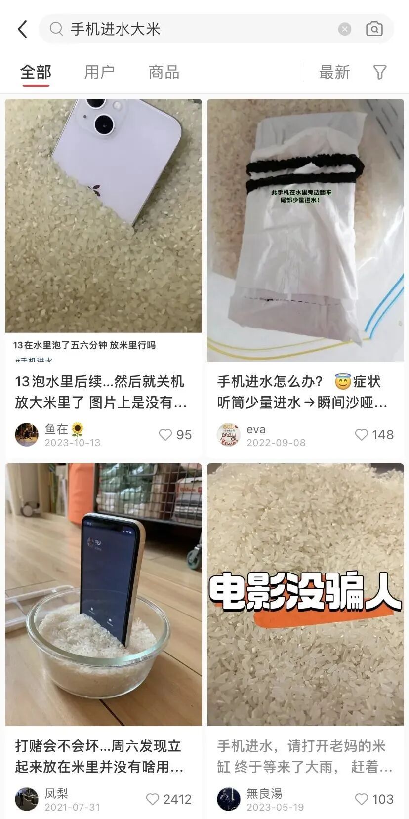 短时间充不上电还是小事,真的进水损坏了,大概率到最后都得自费维修。为了减少损失,各类“自救偏方”也层出不穷。其中,米缸成为了进水手机的“疗伤之地”。