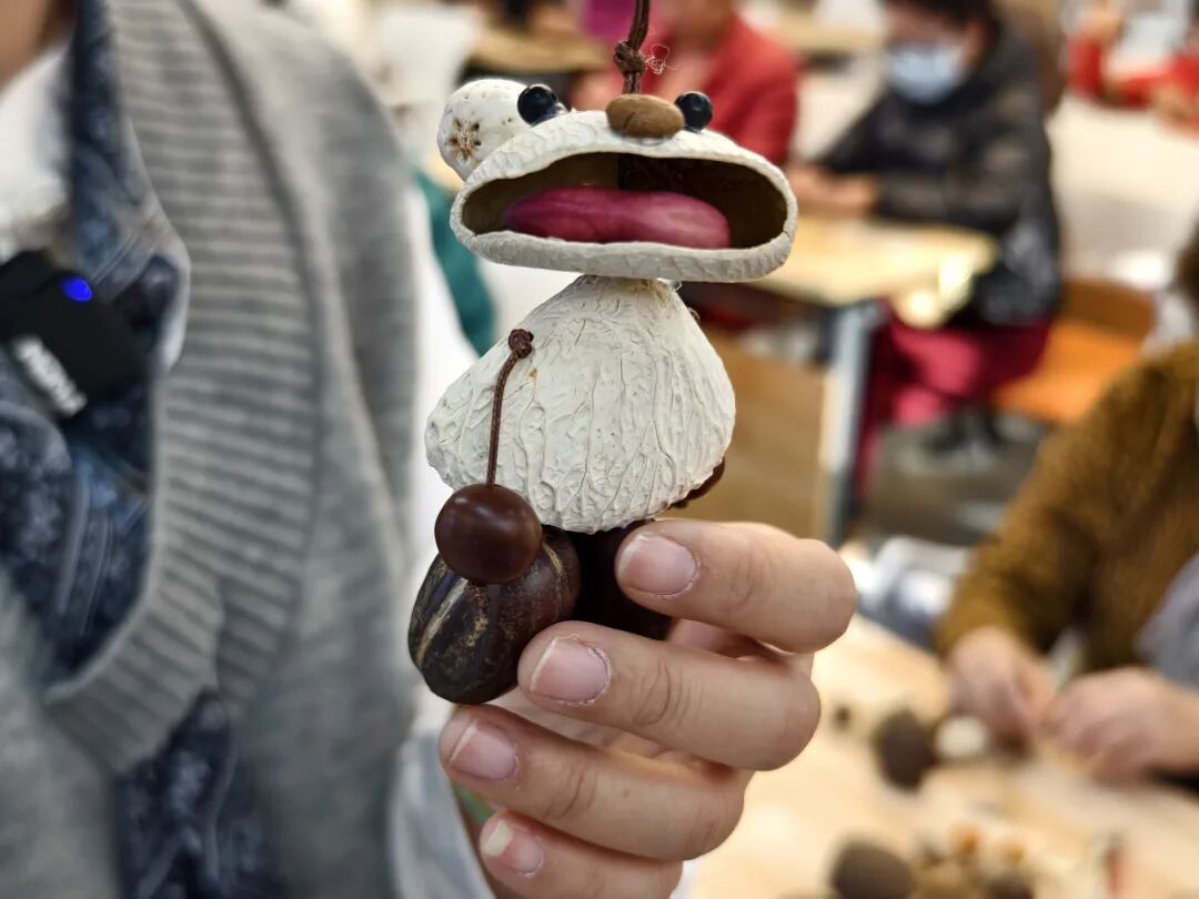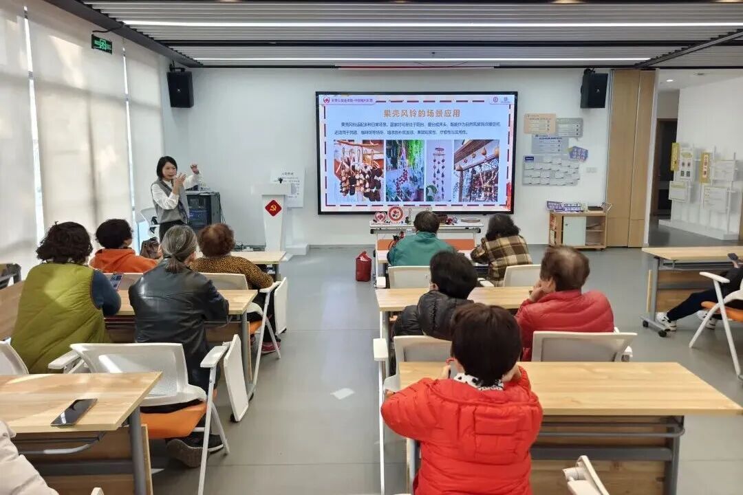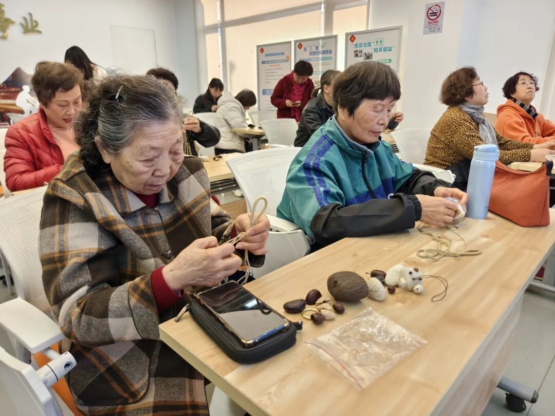以前随手就扔的植物果壳,现在都成了居民手里的宝贝。在宝山区吴淞街道党群服务中心,一些钟情于DIY的中老年居民跟着辅导老师学会了新的玩法,那些坚果核、椰子壳之类的东西经过一番倒腾,很快就“蝶变”为一串串好看、好听的纯天然摇铃。