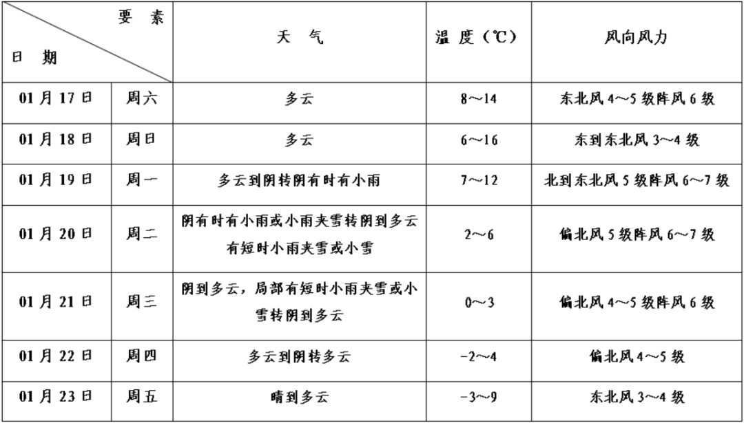 本区未来十天天气预报