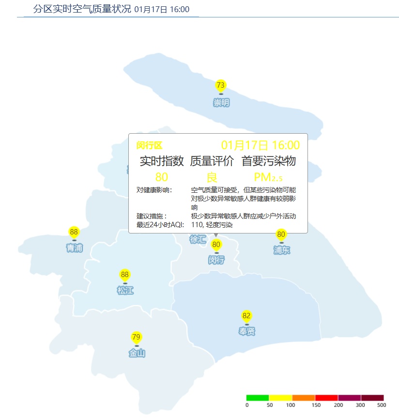 闵行区AQI为80,良。
