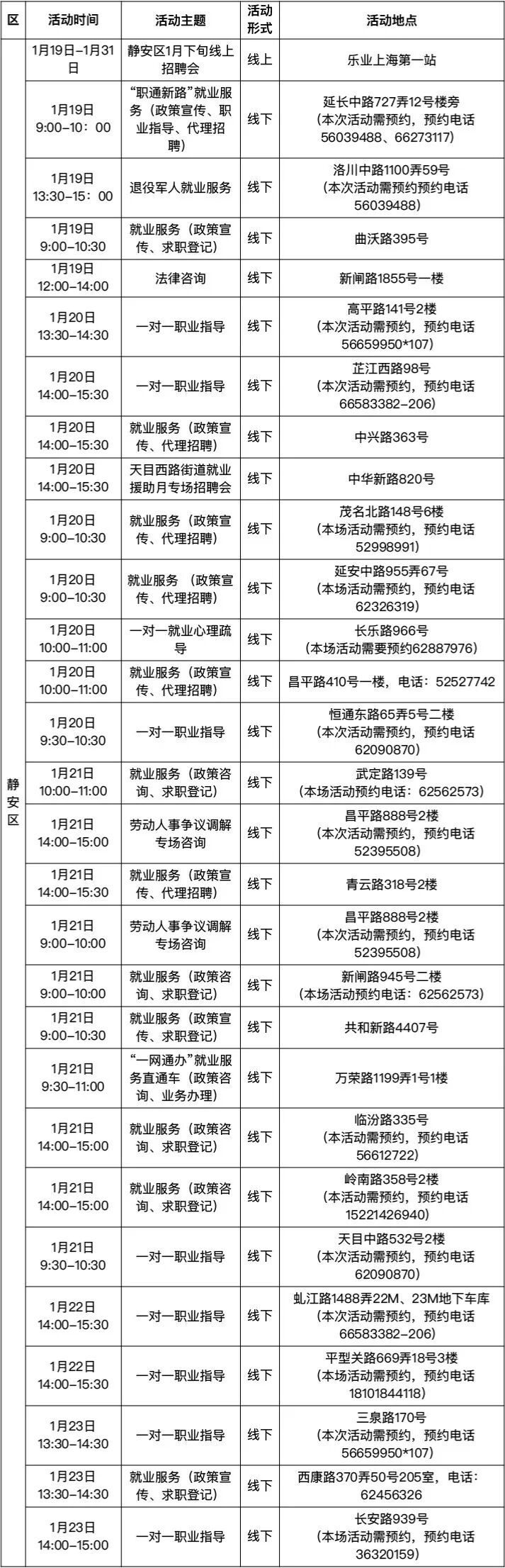 “乐业上海优+”活动排片表