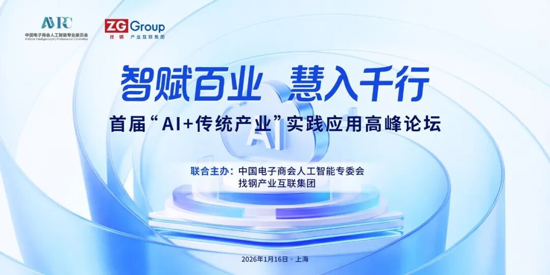 1月16日,由中国电子商会人工智能专业委员会主办、找钢网集团联合主办的“智赋百业·慧入千行”——首届“AI+传统产业”实践应用发展论坛在上海举行。来自人工智能技术企业、传统产业平台、投资机构及学术界的多位嘉宾齐聚找钢网集团总部,围绕人工智能如何从技术能力走向产业系统应用能力、推动实体经济高质量发展等议题展开深入交流。