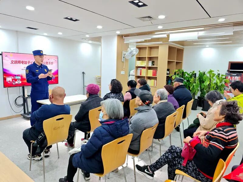 在居民区活动室,黄浦区复兴消防救援站的消防员围绕“居家用电安全”主题,结合近年来的典型火灾案例,通过视频、图文结合形式,深入浅出地讲解了超负荷用电、使用劣质电器、电热设备操作误区等常见风险。针对“漏电保护器频繁跳闸如何处理”“老旧线路自查要点”等居民现场提问,消防员进行“一对一”实操演示,让安全知识从“耳闻”转化为“心知”。