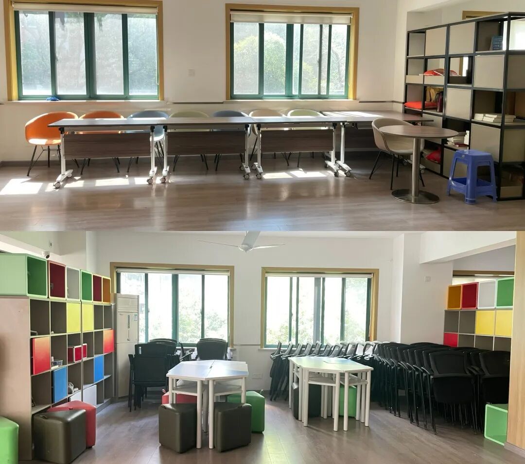 近期完成的社区活动室升级,则成为空间再造的点睛之笔。科学划分的四大功能区,搭配崭新的墙面、明亮的灯具与防滑地板,使其成为全龄段居民休闲、交流、凝聚情感的新客厅。