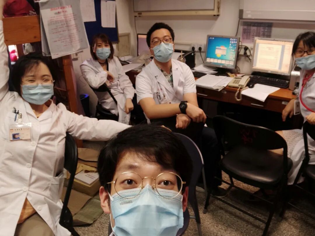医院实习加班时,与科室里其他同事的合照