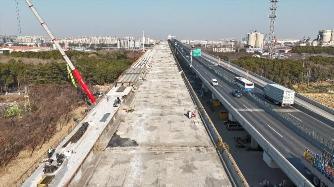 S4公路奉浦东桥及接线工程近日实现关键进展:奉浦大桥(西桥)引桥顶升施工完成,最大顶升高度达8.896米。目前,该工程整体进度已超过80%,预计2026年底实现全线基本建成。