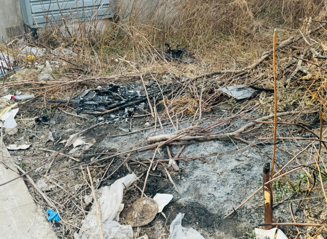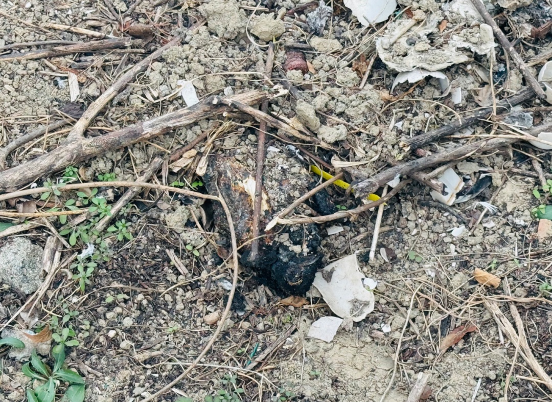 除此之外,记者还发现,有近十只鸽子的尸体,在未做任何处理的情况下,随意被丢弃在养殖大棚边。而更令村民担心的是,他们还在养殖点内发现了焚烧的痕迹。在一处路面焦黑的区域,陈先生指着路面说:“我儿子看到过他们在这里焚烧死鸽子,根本没做无害化处理。”