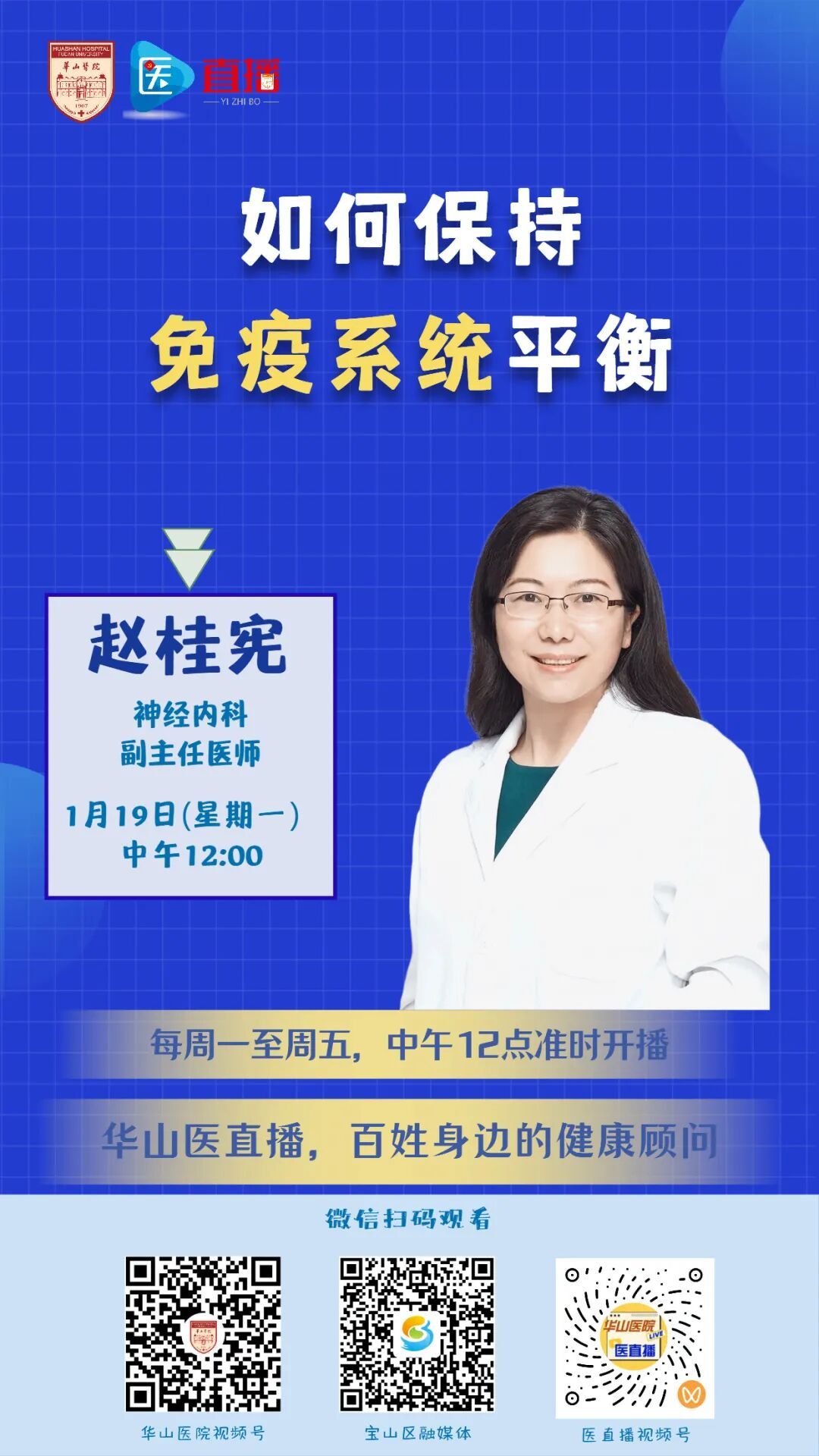 保持免疫系统平衡状态是现代化健康管理的重要理念。本期医直播,复旦大学附属华山医院神经内科副主任医师赵桂宪,将和大家一起分享如何全面管理免疫系统。