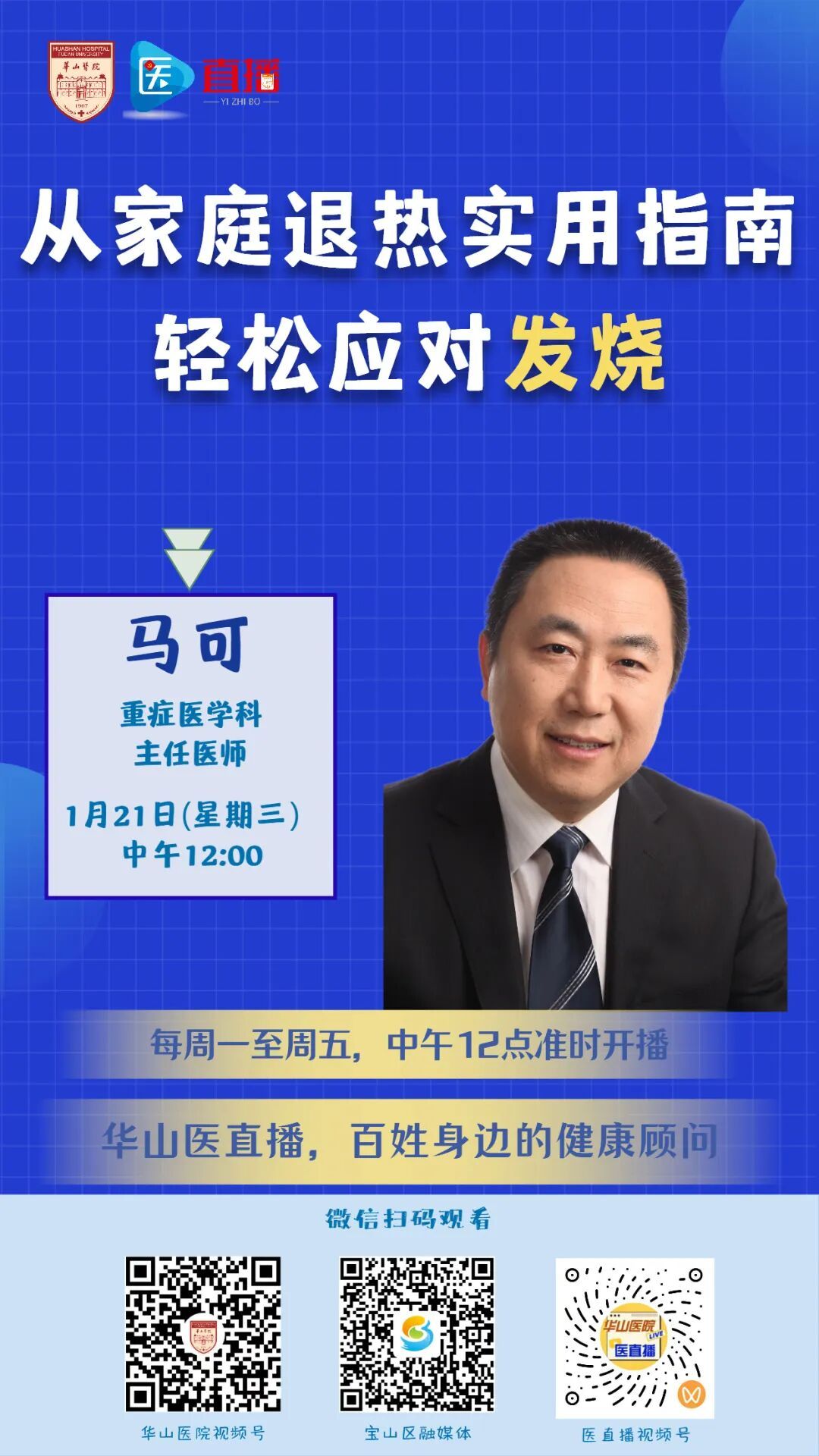 发热是生活中的常见症状,遇到发热不要慌。本期医直播,复旦大学附属华山医院重症医学科主任医师马可,为您讲解如何认识发热,应对发热。