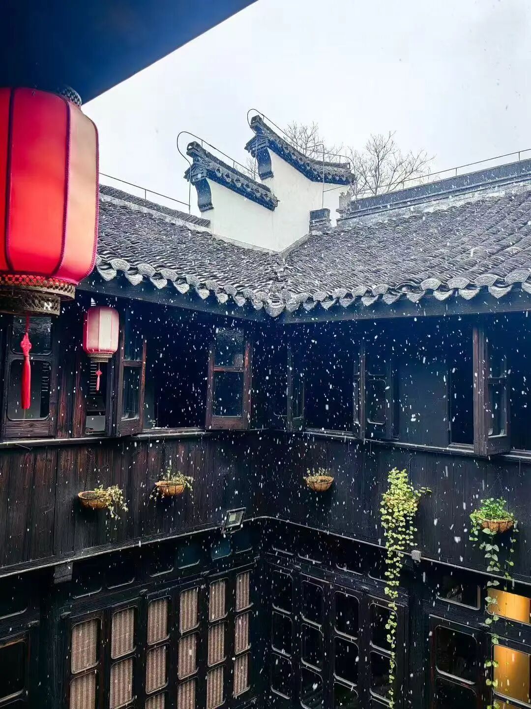 上午9点左右,松江雪势渐大,漫天飞雪与街头中国结相映成趣,尽显“瑞雪兆丰年”的美好意境。路上行人纷纷拿出手机,记录下这一浪漫时刻。“感觉这是松江近几年最大的一场雪,雪花飘飘的样子特别震撼。”市民陈先生感慨道。