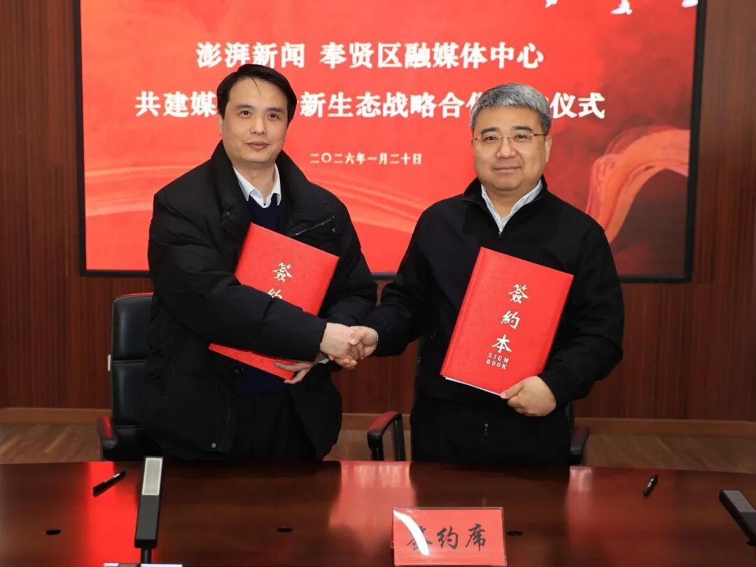 1月20日,奉贤区融媒体中心与上海东方报业有限公司(澎湃新闻)正式签署共建媒体融合新生态战略合作框架协议。未来,双方将在内容协作、品牌联动、人才交流与信息共享等层面开展机制化、常态化的务实合作,夯实互信基础,提升双方整体影响力与公信力,并为未来在更广阔领域探索深度合作创造可能。 根据协议,双方将在内容协同与传播创新、品牌共建与活动联动、人才交流与能力共建、信息共享与行业前瞻等方面开展常态化、机制化务实合作,旨在提升双方整体影响力与公信力,为未来拓展更广领域的深度合作奠定基础。 协议明确,双方秉持“互相尊重、优势互补、资源共享、合作共赢”的原则,以诚信为基础推进各项合作。此次合作标志着奉贤区融媒体中心在推进媒体深度融合、构建传播新格局方面迈出重要一步,双方将通过资源整合与模式创新,共同助力区域形象传播与媒体生态建设。