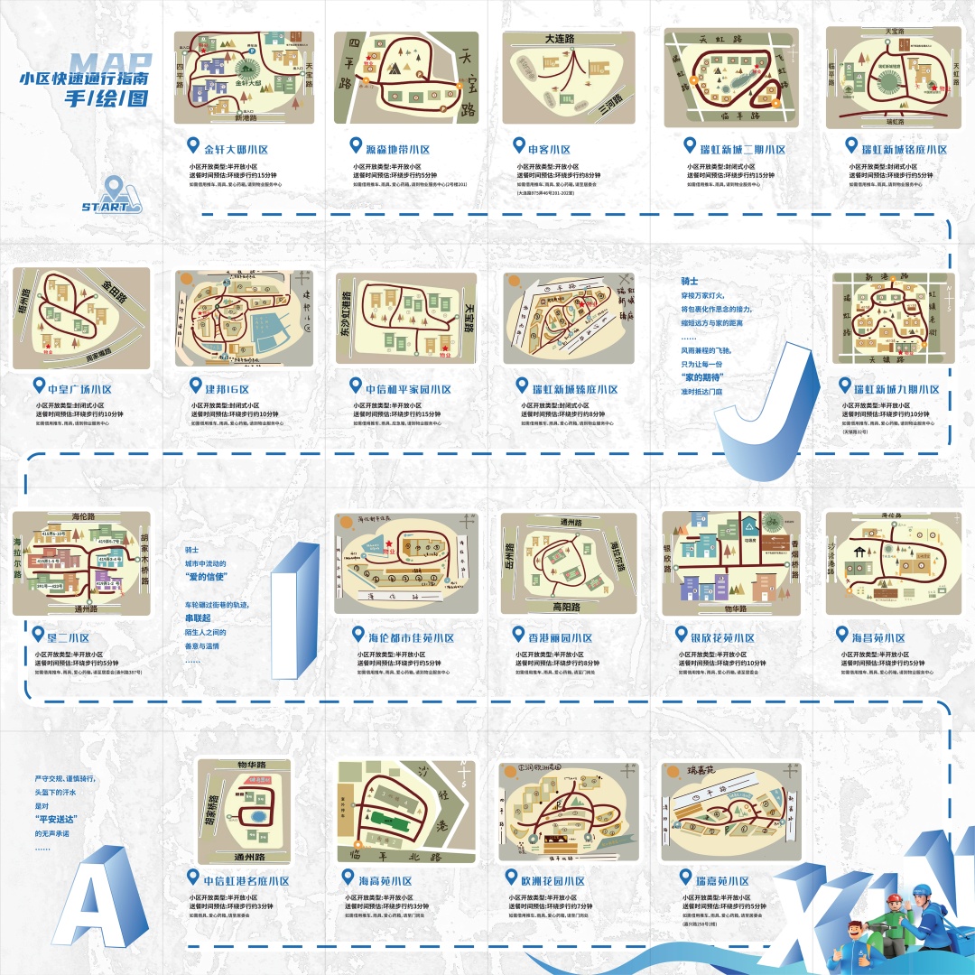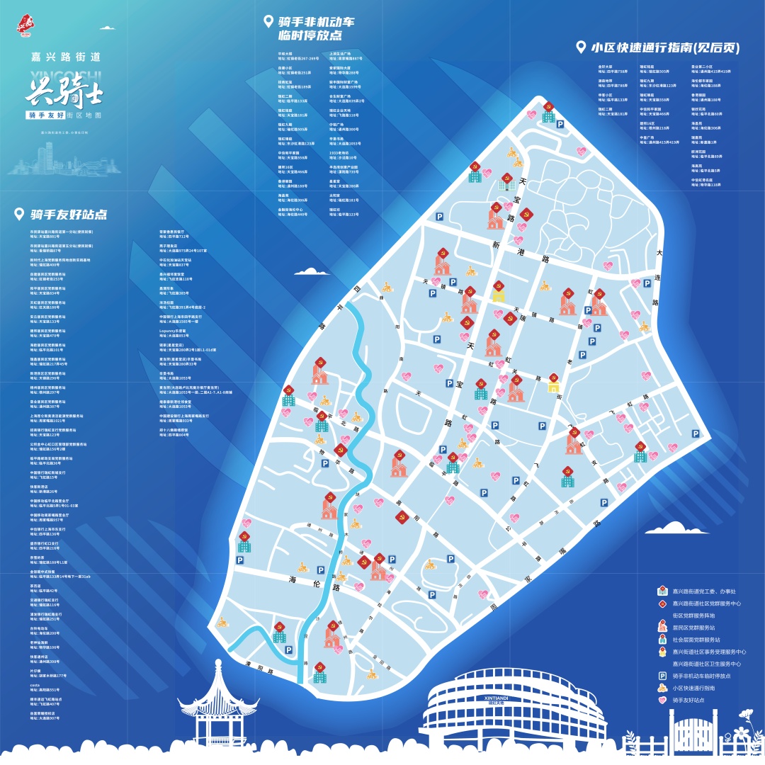 ●街道党群服务中心制作的《“兴骑士”骑手友好街区地图(口袋版)》《小区快速通行指南手绘图(口袋版)》《金融街(海伦)中心党群服务站指引手册》等各类为新就业群体服务的资讯,帮助骑手更好融入社区、便捷工作。