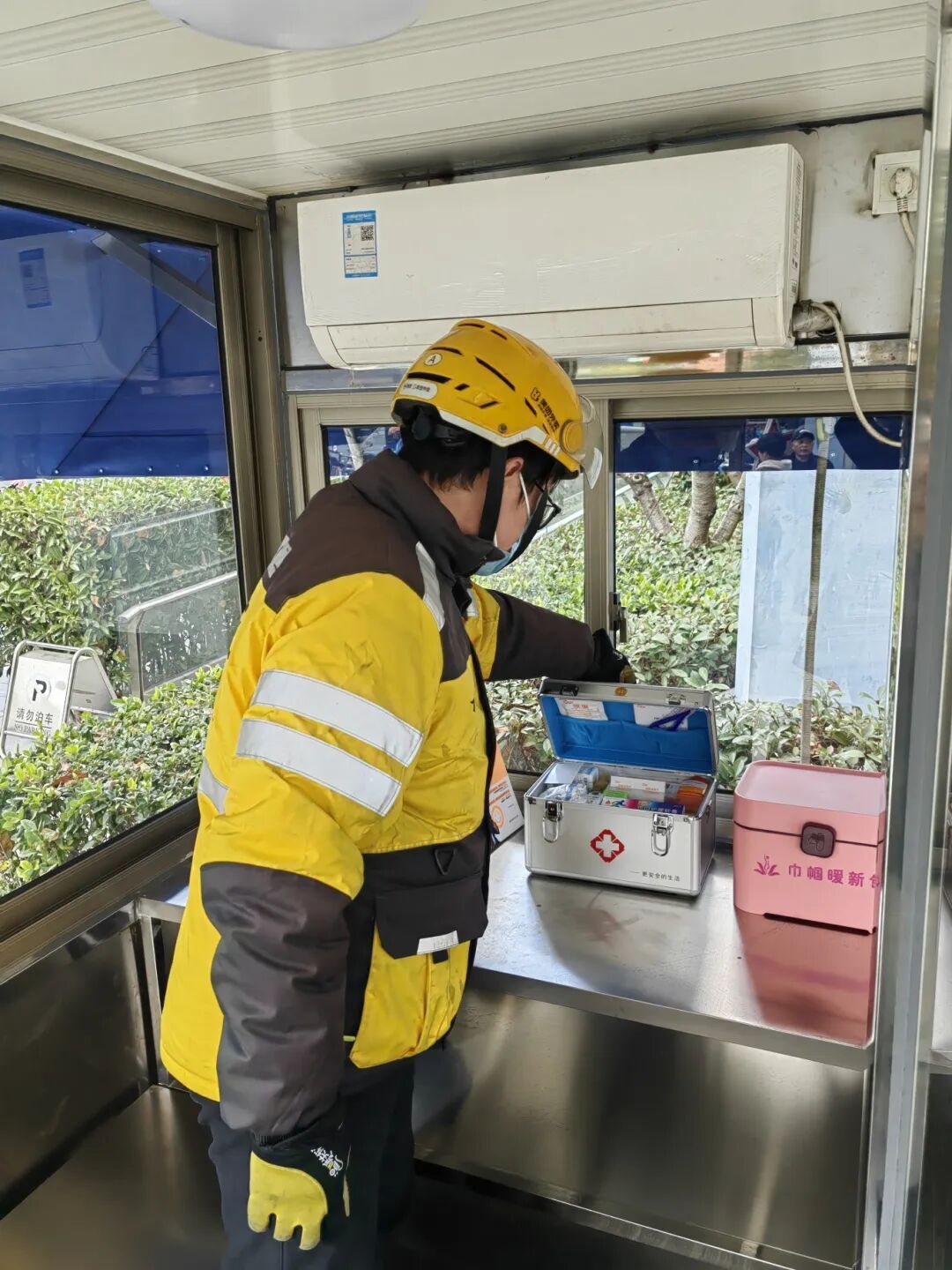 ●街道总工会专门配置应急医药箱,内含碘伏棉签、创可贴、伤口护理软膏等各类应急药品,为骑手们的健康保驾护航。