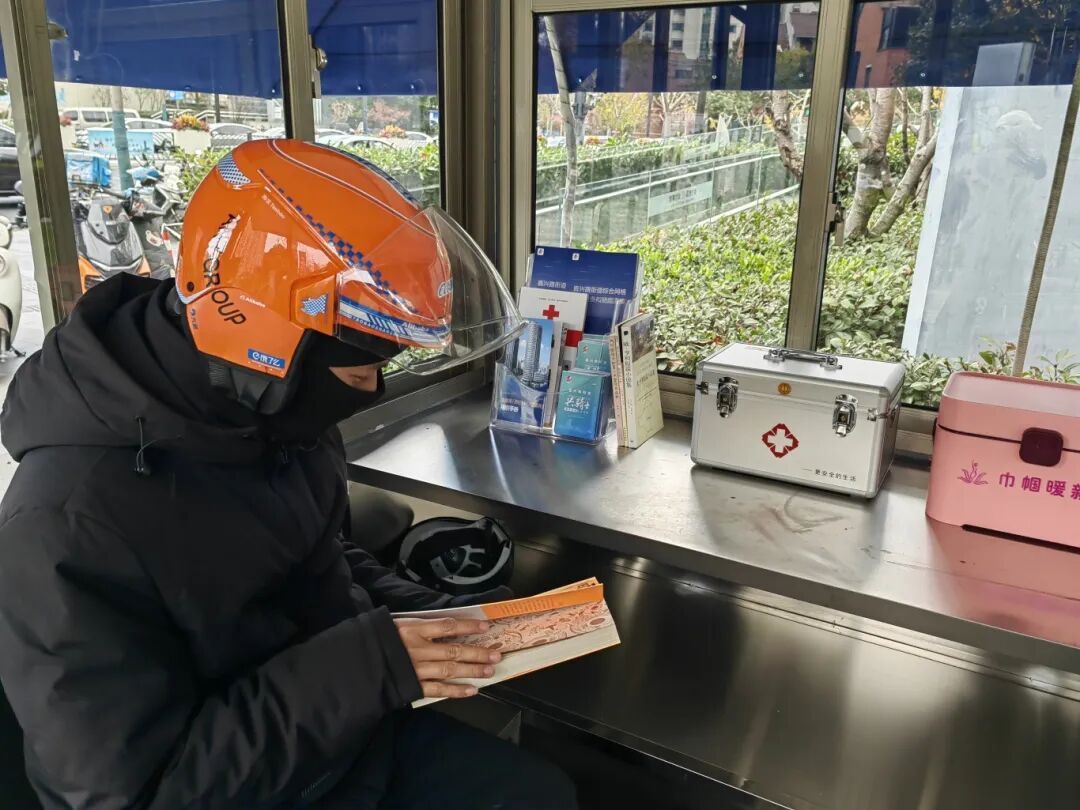 近日,位于金融街(海伦)中心的一处闲置保安亭焕新亮相,成为了面向新就业群体的免费休息站——嘉“新”驿站,为外卖员、快递员提供空调、电源,医药箱、服务包、书籍以及贴心的骑手地图,成为了寒冬中骑手们休憩补能的温馨港湾。
